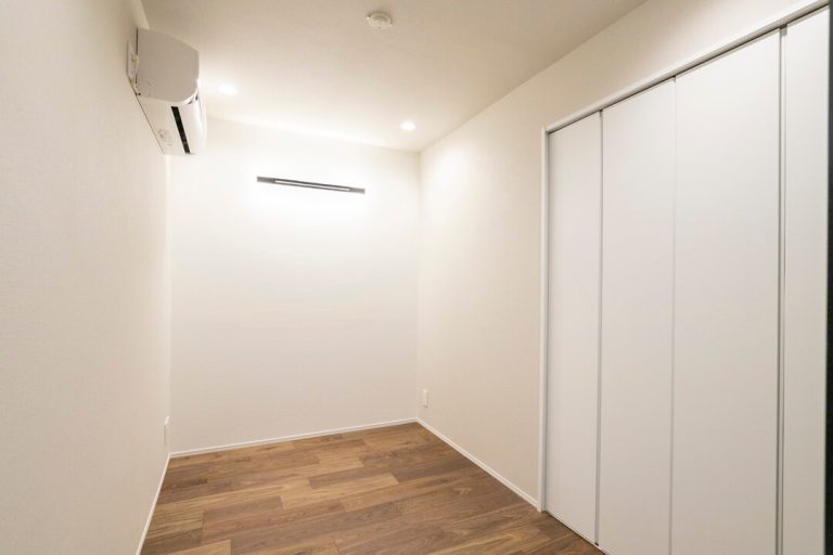 約4.2帖の寝室2はリビングダイニングキッチンと隣接しています。引き戸を開ければ中の様子を伺うことができるので、子ども部屋などに使うと安心かもしれませんね。パイプハンガー付きのクローゼットもあって◎。