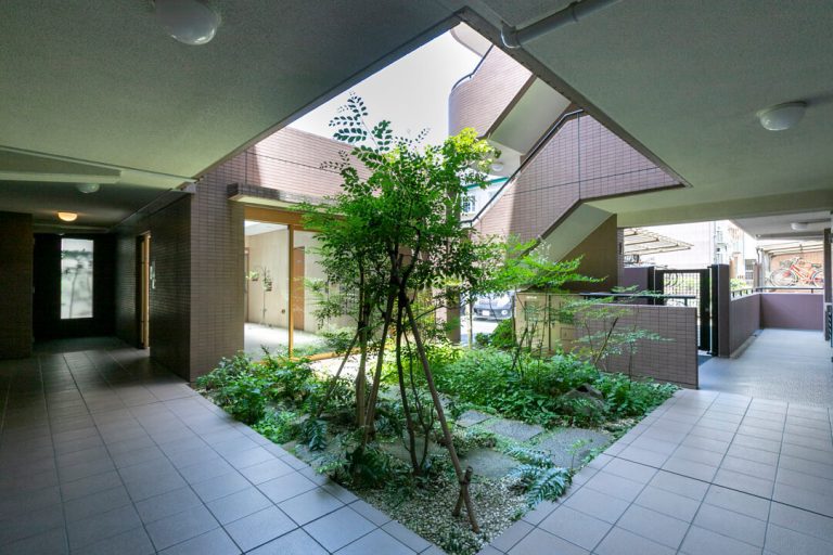 1996年(平成8年)8月竣工、総戸数41戸、鉄筋コンクリート造、7階建てのマンションです。ブラウン調の外観に緑がアクセントになっています。エントランスや共用部も緑があり、自然を感じることができますよ。オートロック、モニター付きインターホンなのでセキュリティ面は安心。24時間利用可能な屋内ゴミ置き場もあるので便利です。また、本マンションは東急東横線「学芸大学」駅から徒歩13分のところにあります。マンションから徒歩2分のところにはバス停(目黒駅行き)があるので、バスの利用もできますよ。コンビニやスーパーも徒歩3分以内に揃っているので日用品の買い物に困ることもなさそうです。