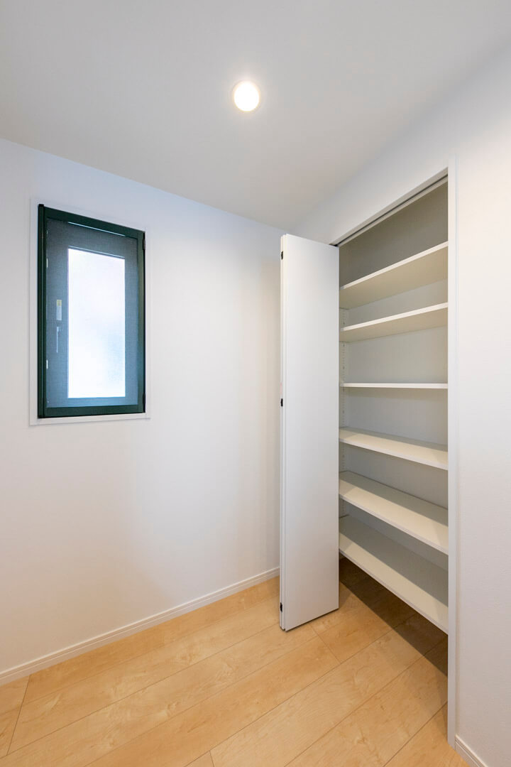 1Fにも洋室があります。約6.9帖でゆとりのある広さ。大容量のクローゼット付きで収納性に優れています。開口部分が大きく、洋服や荷物の出し入れがしやすいですよ。独立性が高く静かに過ごせるので、ワークスペースや趣味部屋におすすめです。