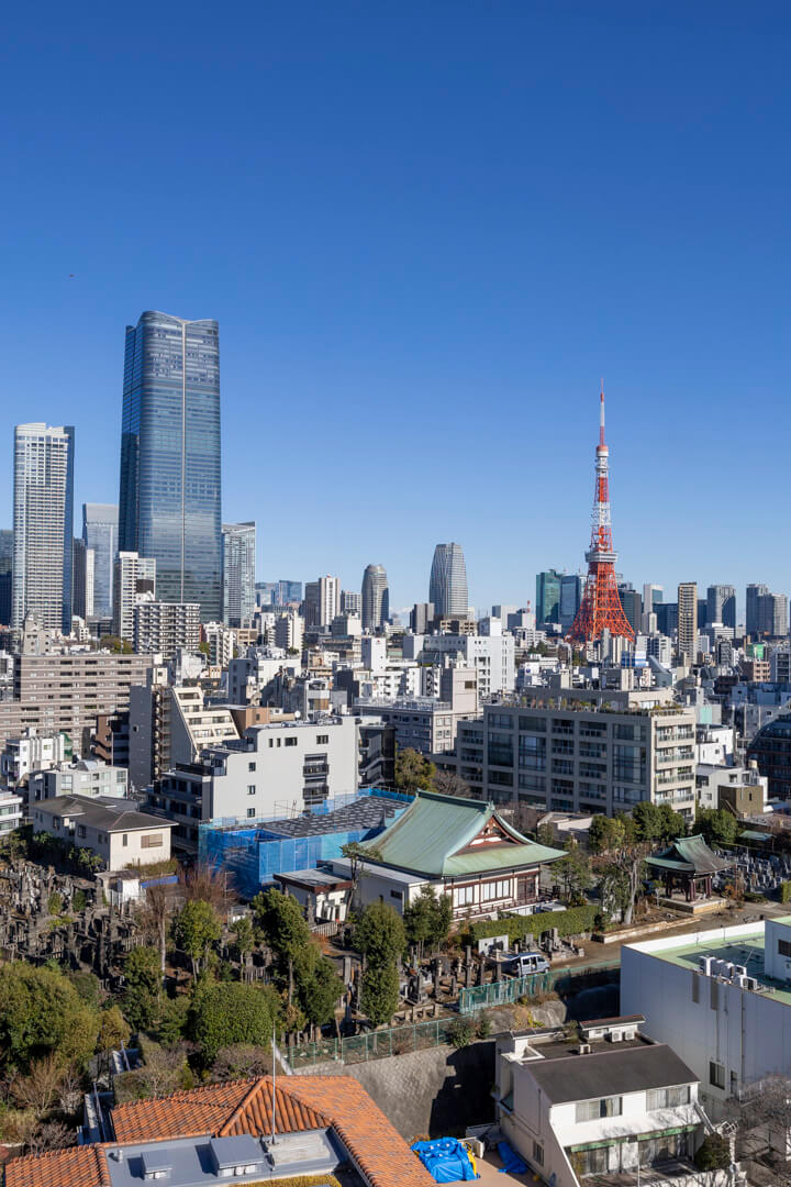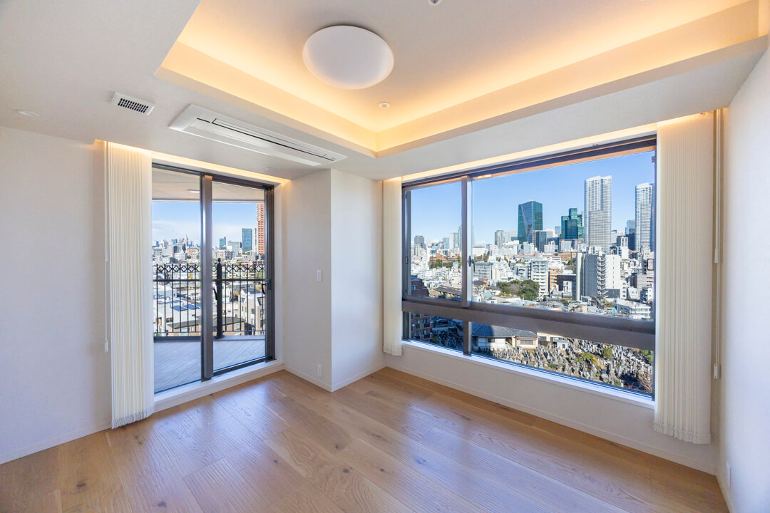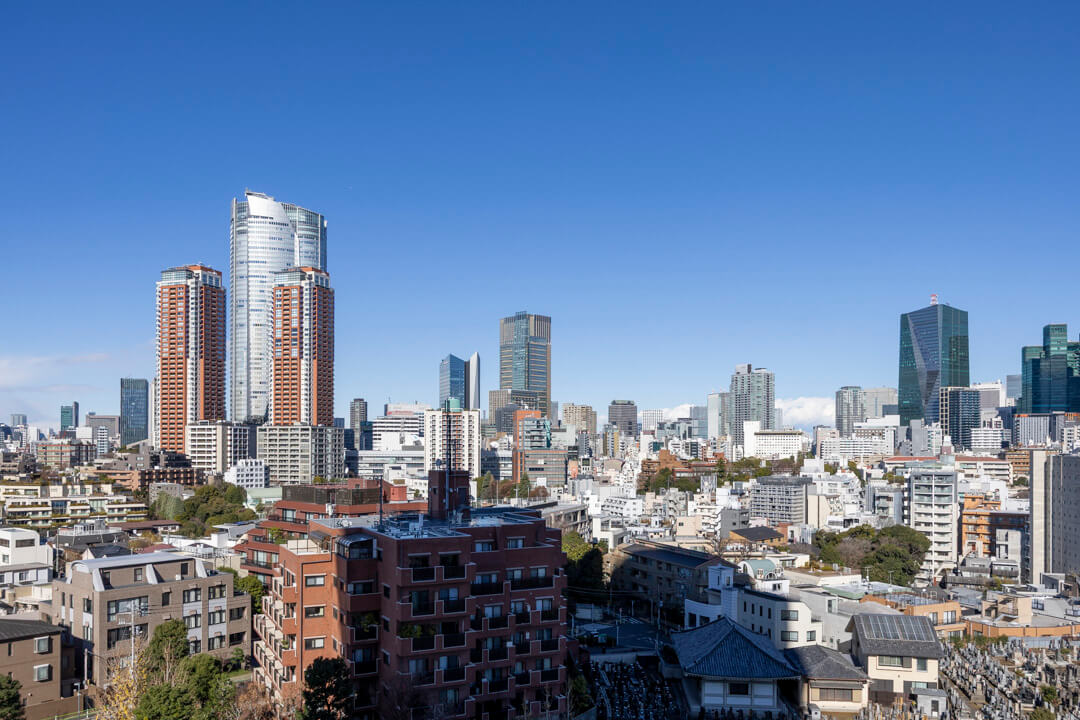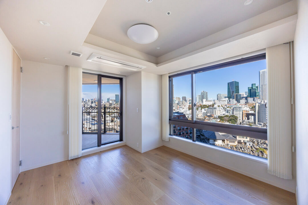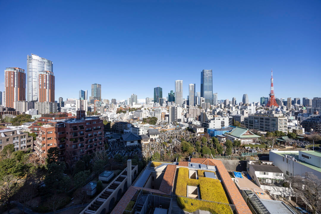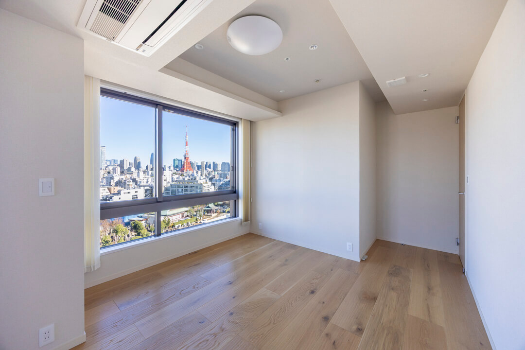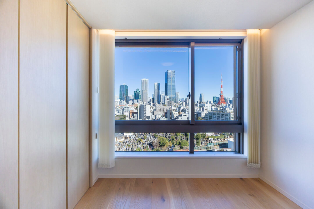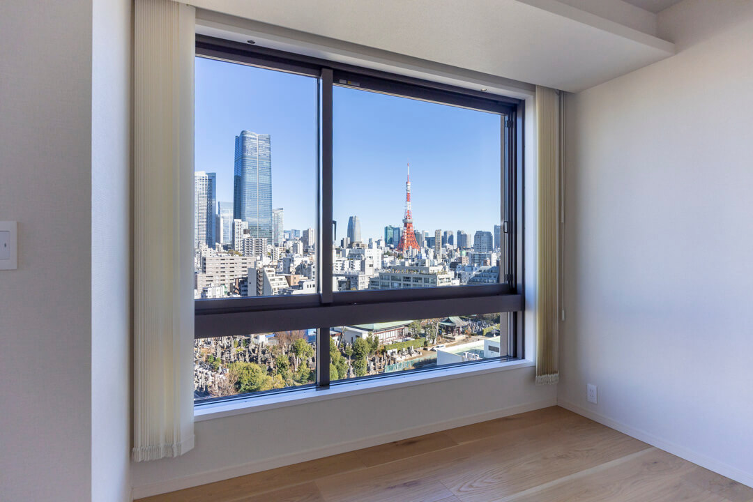 室内からでも眺望良好。北東の方角には東京タワーも望めます。夜には夜景も楽しめそうですね。
