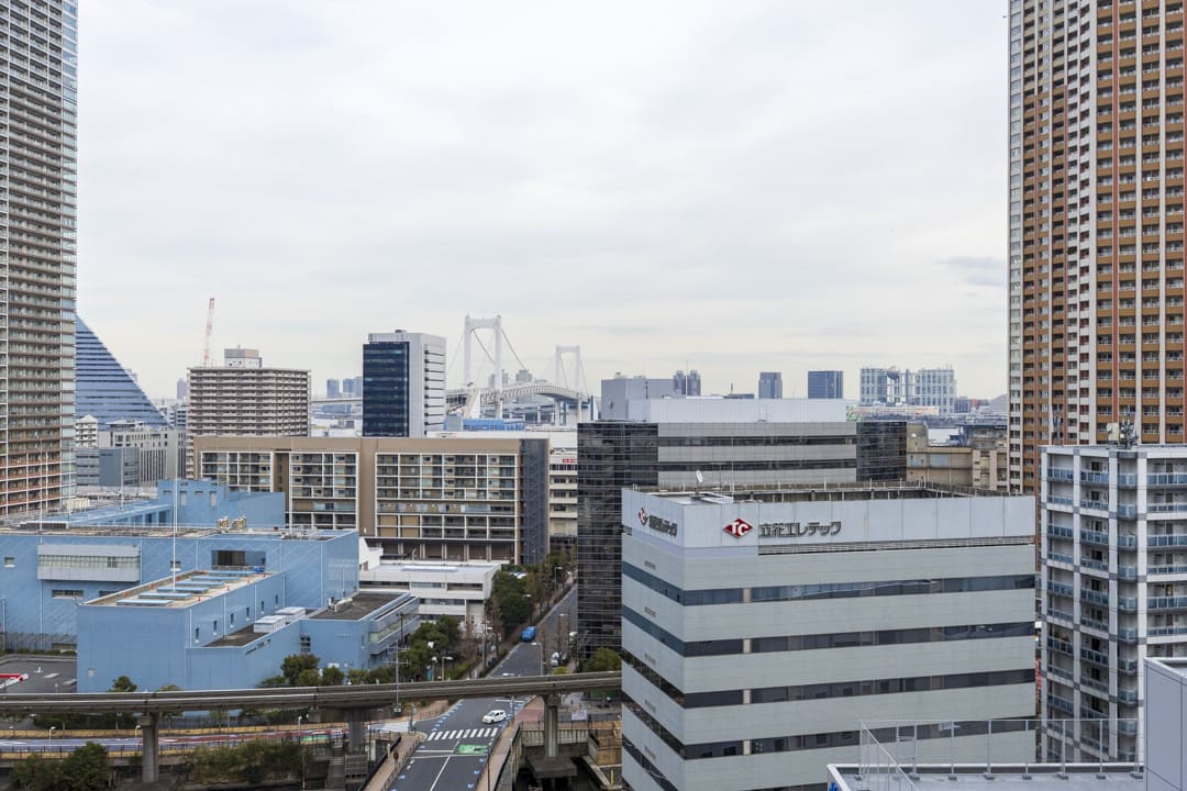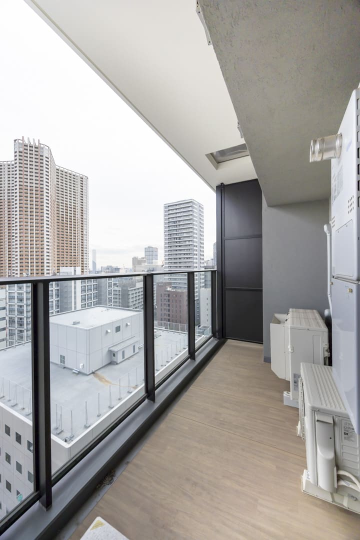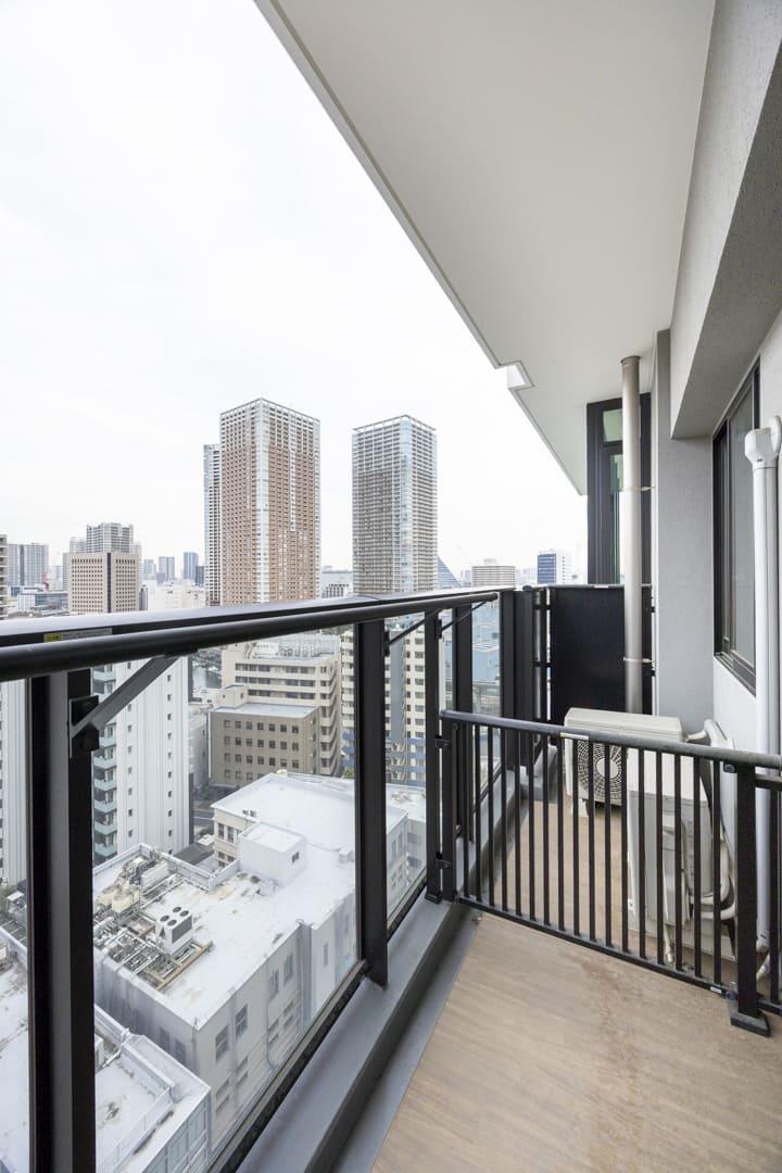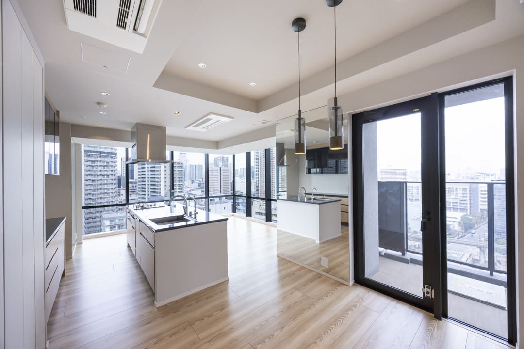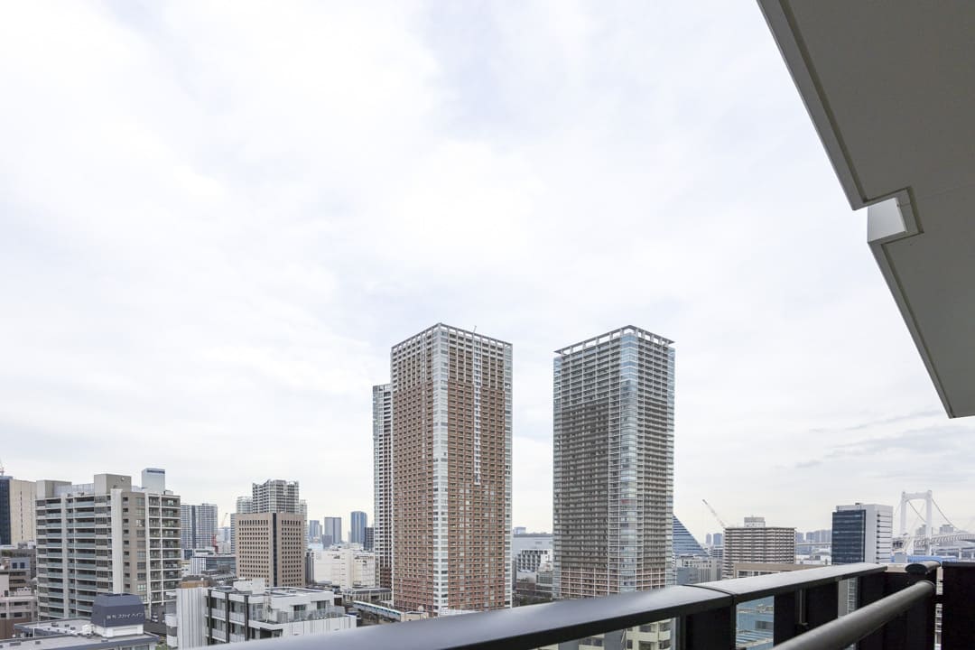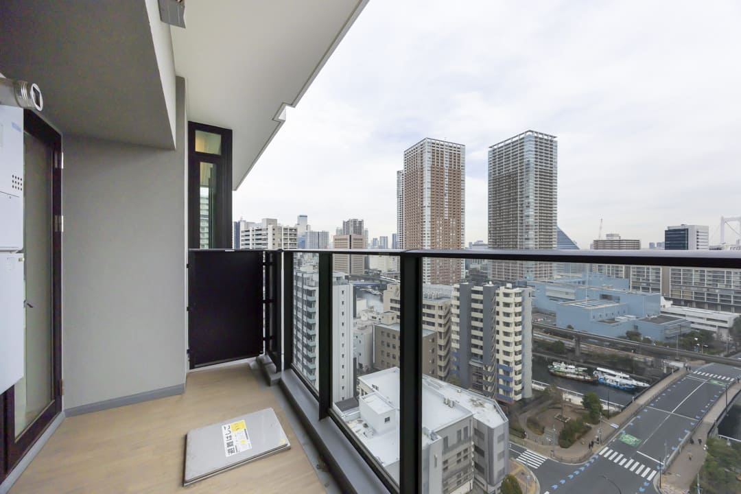 リビングダイニングキッチンからは、東側のバルコニーにアクセスできます。レインボーブリッジを望むことができ、夜景も楽しめそうですよ。