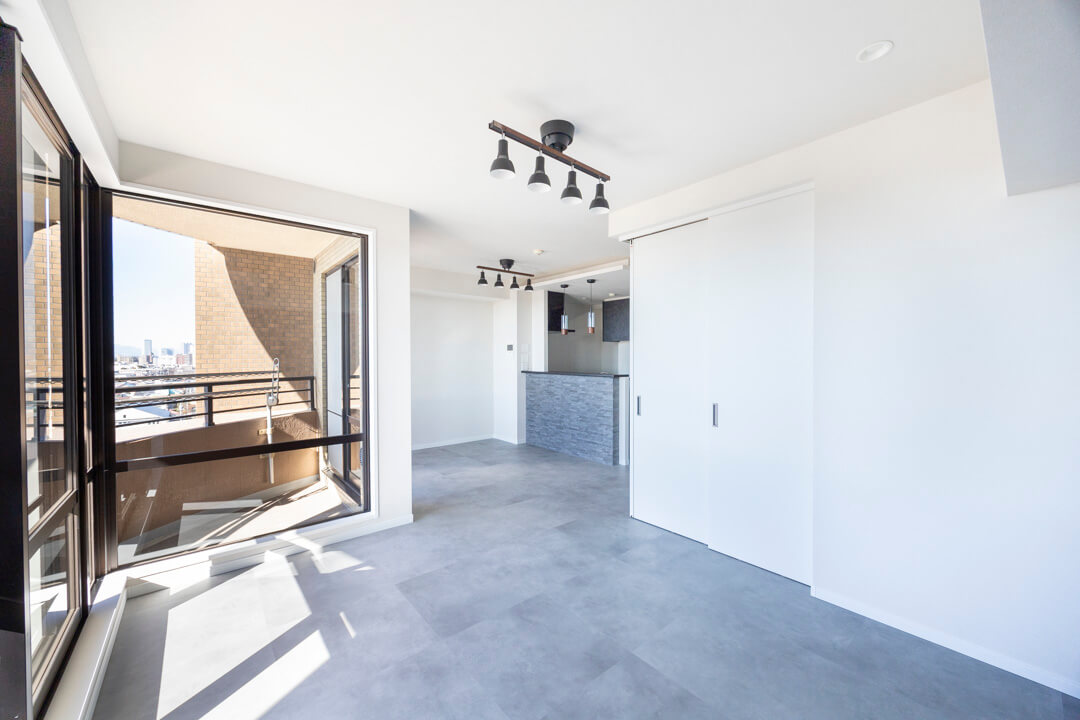 約6帖の洋室1。LDKとは引き戸で仕切られているので、フレキシブルに活用できます。扉を開放して拡張リビングにしたり、閉めてワークスペースやプライベート空間にしたり。ライフスタイルやシーンに合わせて使い分けてくださいね。