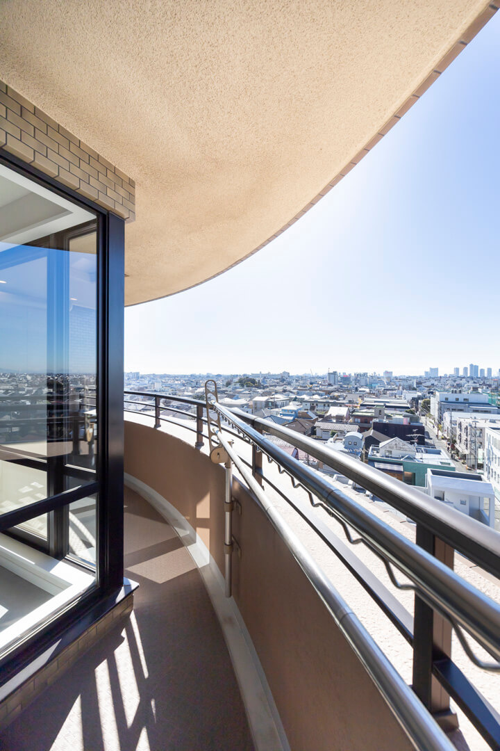 LDKに接続するバルコニー。8階南東向きにつき日当たり・眺望良好です。晴れの日には洗濯物がよく乾きそうですね。富士山や武蔵小杉タワー、横浜ランドマークタワーを一望できる開放的な眺め(※天候によります)。ほっと一息つける場所になりそうです。