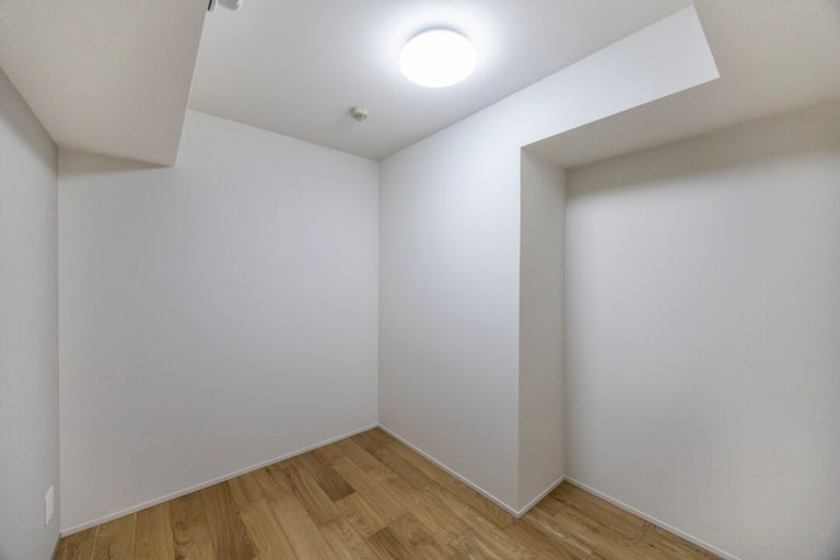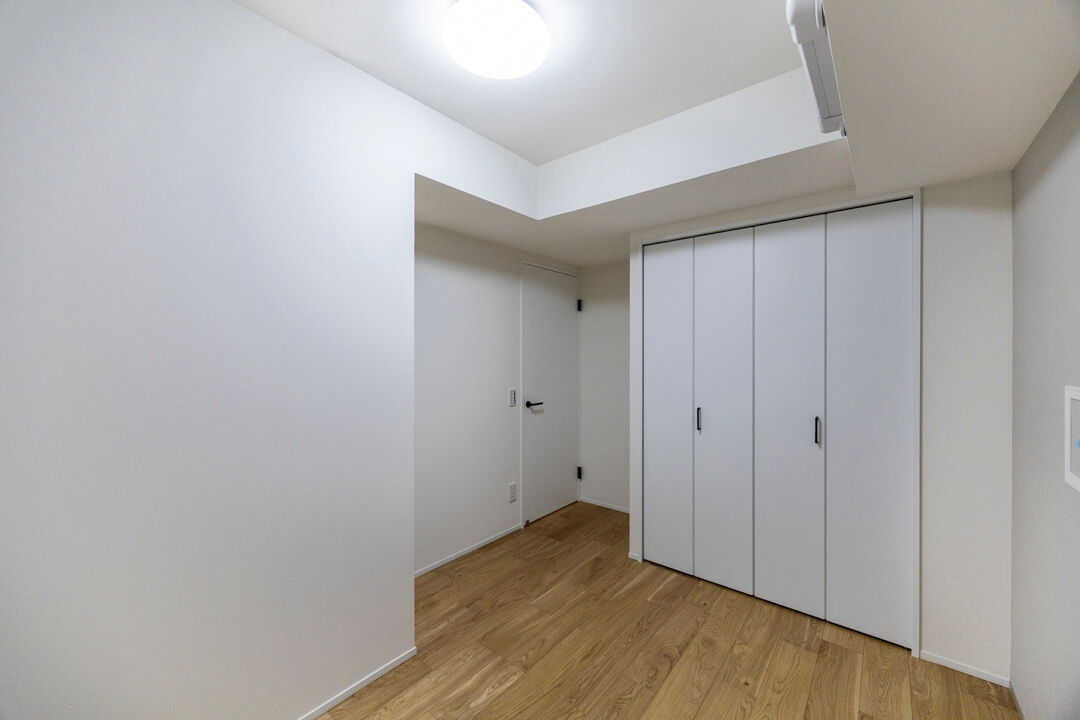 約4.6帖のサービスルーム。こちらのお部屋もほんのりグレー色のアクセントクロスが施されています。廊下に面した独立性の高いお部屋で、ゆっくり過ごせる空間。ワークスペースや趣味部屋としても使いやすいサイズ感です。クローゼットも備わっていますよ。