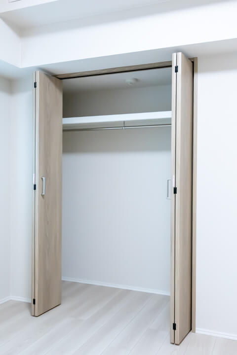 リビングと隣接した約5.1帖の洋室3。扉の開口部が広く取られており、リビングと繋げてより広々と過ごせます。床にドアレールがないので見た目もすっきりとした印象。レールにホコリがたまる心配もないので衛生的にも◎です。ワークスペースや趣味部屋としても使いやすいサイズ感です。