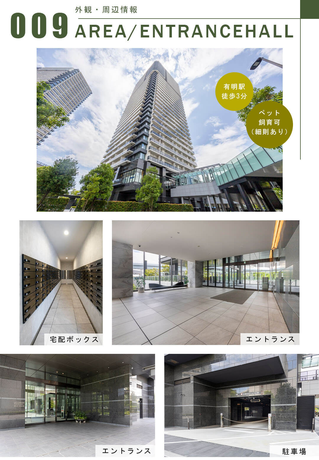 2019年(令和元年)7月に竣工の高層マンション。32階建て、総戸数1539戸のビックコミュニティで免震構造を備えたシンボルマーク的な存在感です。セキュリティ充実で日々安心。宅配ボックスも設置されており、時間を気にせず荷物の受け取りができます。コンシェルジュサービスをはじめ、パーティーラウンジ、ライブラリーラウンジ、キッズルームなど共用施設も充実しており、日々の暮らしをより快適にサポートしてくれます。敷地内には駐車場を完備。洗車スペースも備わっています。また、飼育細則がありますが、ペットとの暮らしも可能。ペットの足洗い場も付いています。