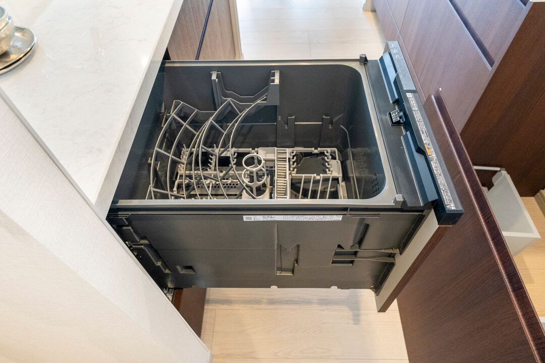 グリル付3口ガスコンロや浄水器一体型水栓、食洗機など、お料理好きの方に嬉しい設備が揃っています。効率良く調理でき、レパートリーも増えそうですね。さらに、シンクにはディスポーザーを搭載。生ごみ処理の手間が軽減され、悪臭の原因を防いでくれます。