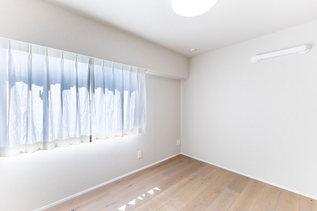 約5.7帖の洋室2。こちらも南東向きで、窓からあたたかい光が差し込みます。奥行きのあるクローゼットが設置されていて収納力も◎。子ども部屋にいかがでしょうか?