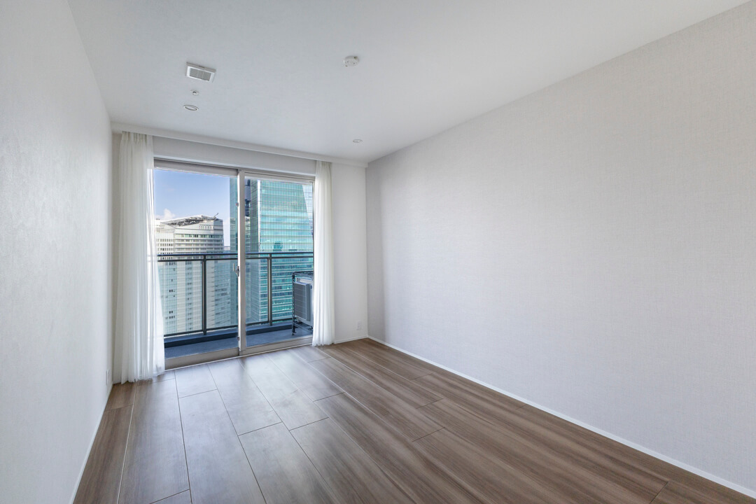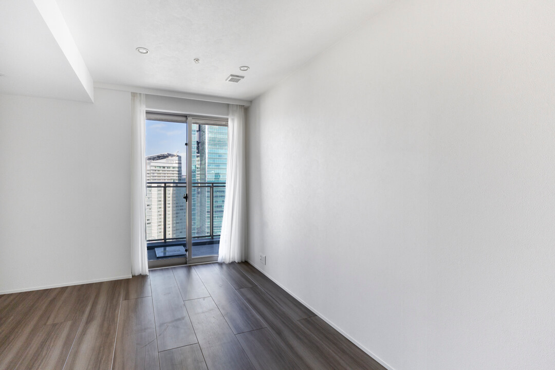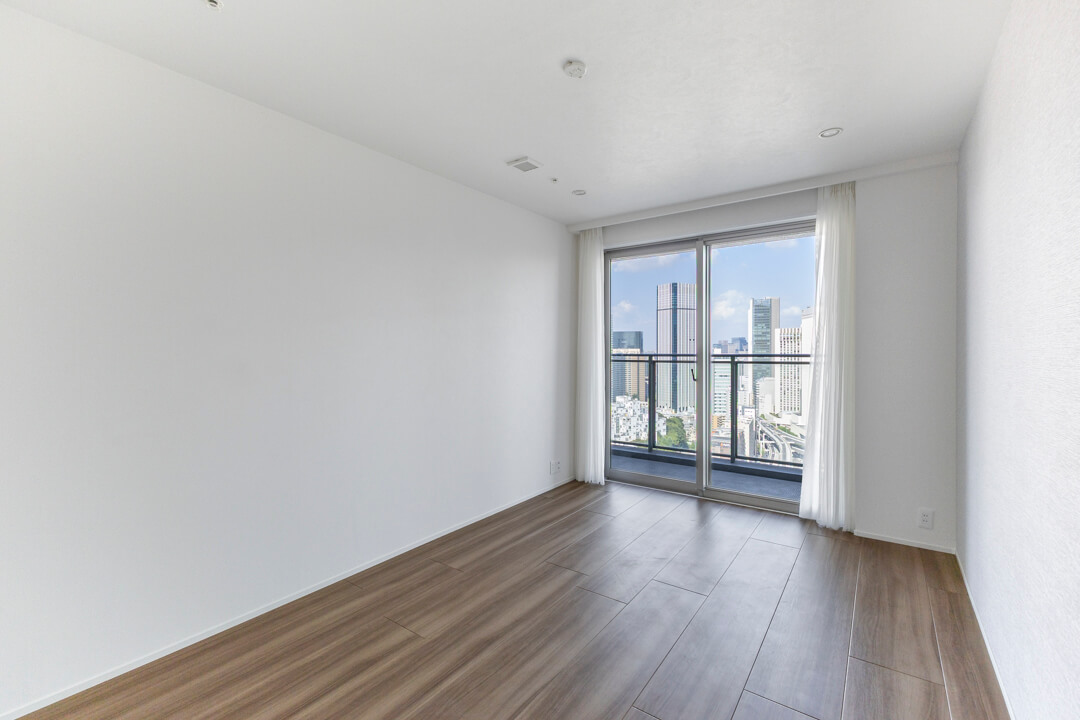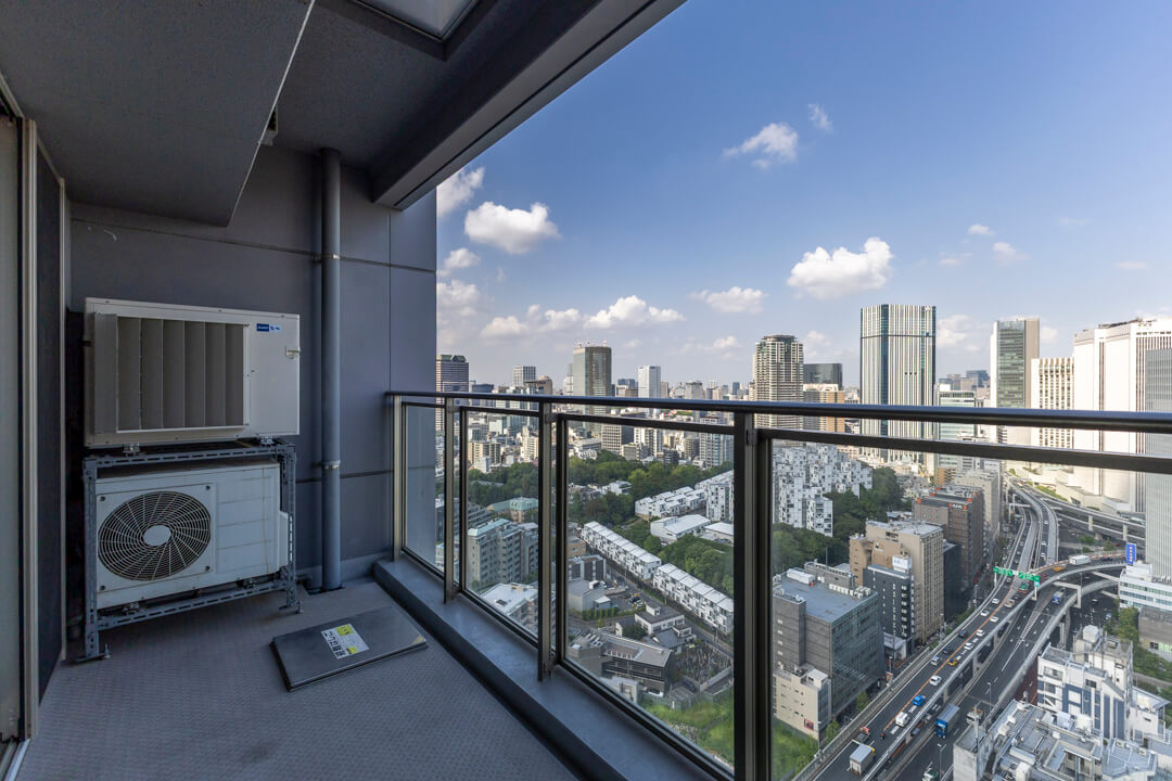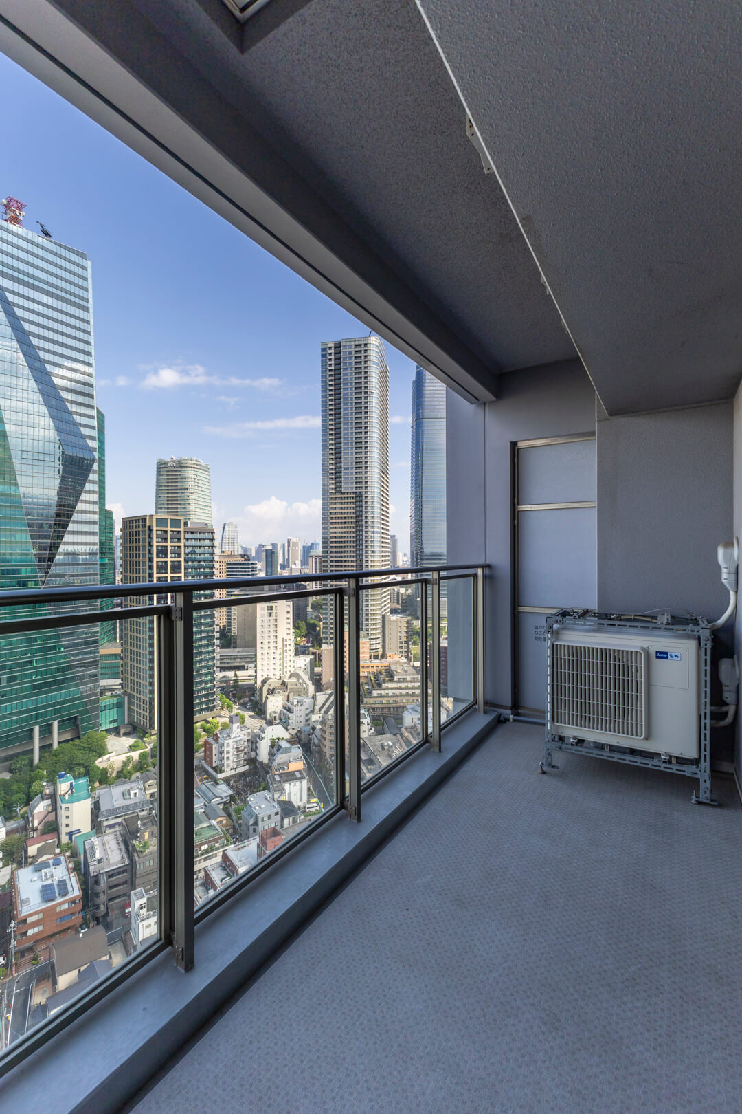 寝室2部屋に面する10.80㎡のバルコニー。30階部分につき眺望良好です。都心でありながら周辺には低層の建物が多く、青く広がる空を仰ぐことができます。「六本木グランドタワー」や「麻布台ヒルズ」といった都会らしいビル群とともに、木々の緑が見えるのも魅力的。開放感溢れる眺めを堪能し、リフレッシュタイムをお過ごしください。