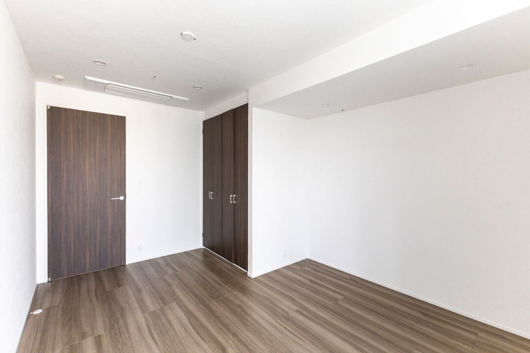 約8帖の寝室2。こちらのお部屋も北東向きバルコニーに接続しています。クローゼットが2つ並び、収納スペースもしっかり確保◎。子ども部屋やワークスペースなど、家族構成・ライフスタイルに合わせて活用できる空間です。