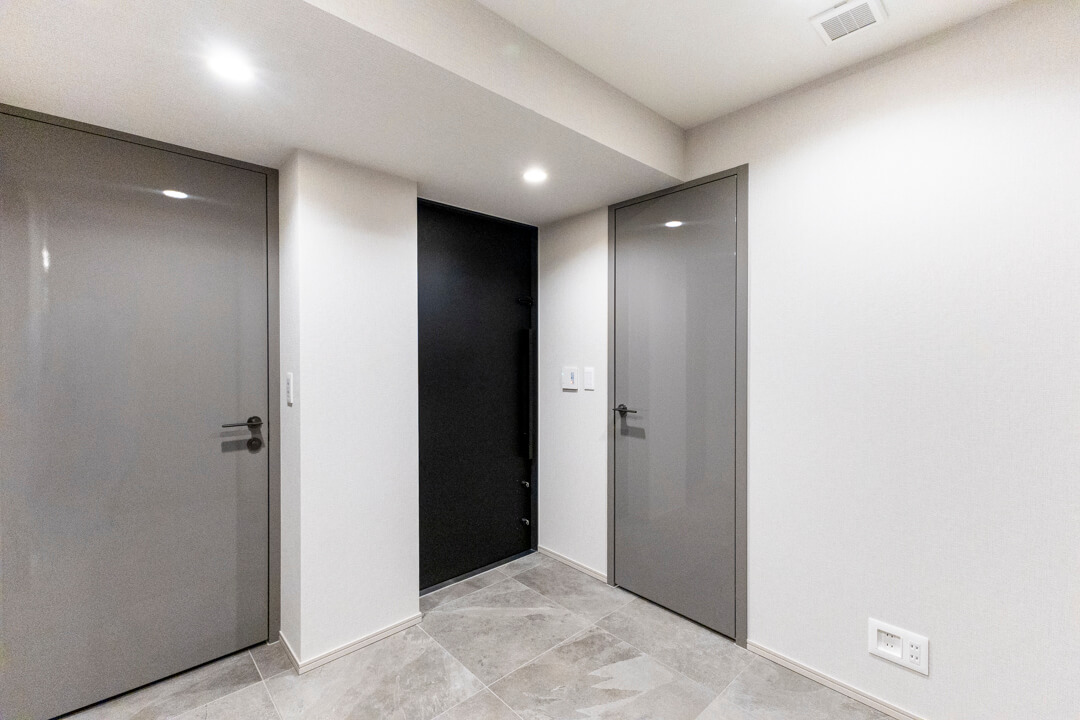 ゆとりのある玄関スペース。照明には人感センサーが搭載されていて、いつも明るく出迎えてくれます。荷物で両手が塞がっている時や夜遅く帰宅した時に、スイッチを探す手間がかからず助かりますね。SIC(シューズインクローゼット)完備で収納性も高く、すっきりとした空間をキープできそうです。