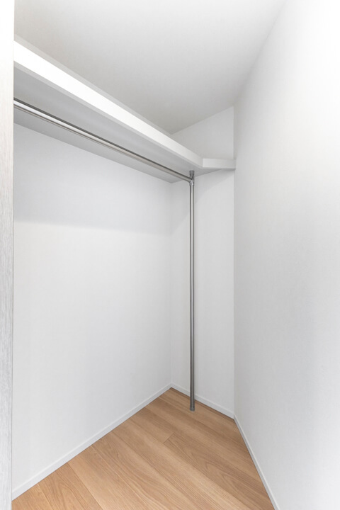 約6.0帖の寝室1。南西向きの大きな窓から自然光が差し込みます。WIC(ウォークインクローゼット)完備で収納性が高く、主寝室にぴったり。衣類はもちろん、トランクケースや季節家電などの大きな荷物も収納でき、居室空間を有効活用できます。