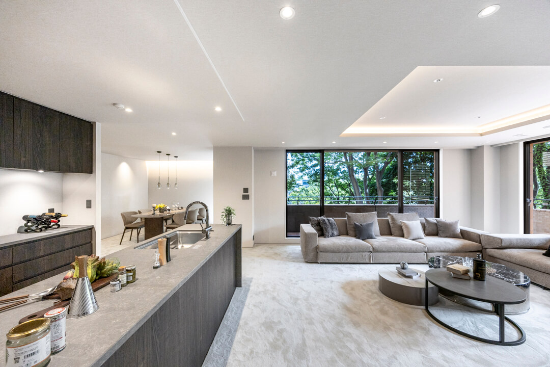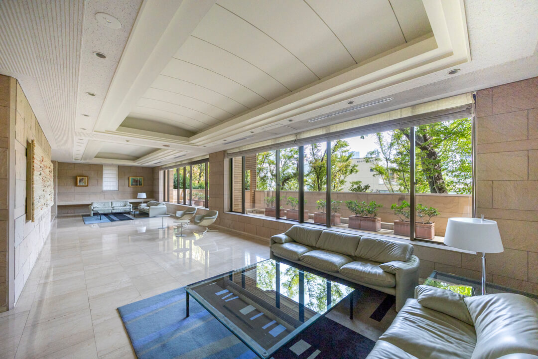 東京メトロ日比谷線「広尾」駅より徒歩4分、広い敷地と小高い丘陵地の特性を活かしたA~Oの15の棟から成る「広尾ガーデンヒルズ」。今回ご紹介する物件は、サウスヒルD棟です。オートロック完備でセキュリティ面は安心。敷地内にはスーパーマーケットや銀行ATM、カフェなどが揃っていて便利な住環境となっています。お部屋は専有面積210㎡超えの4LDK。広々としていて、ゆったりと日常を送ることができそうですよ。窓から緑を感じるのも◎。また、パブリックスペースとプライベートスペースが分かれている造りになっており、プライベートを大切にすることができます。