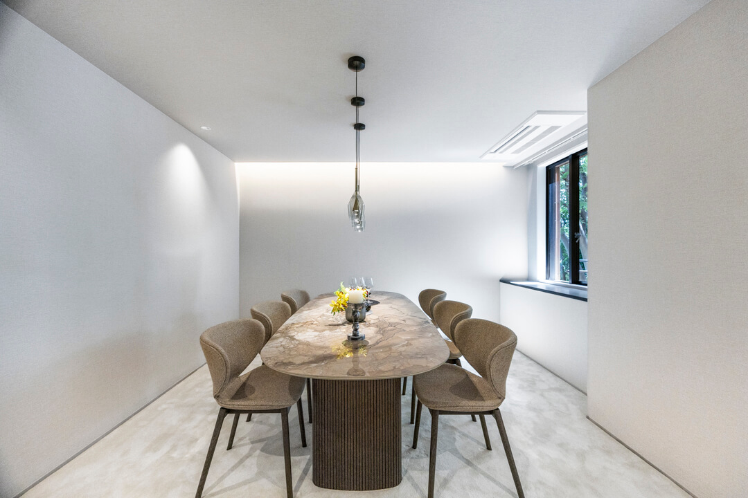折り上げ天井には間接照明があしらわれていて上品な雰囲気を漂わせています。