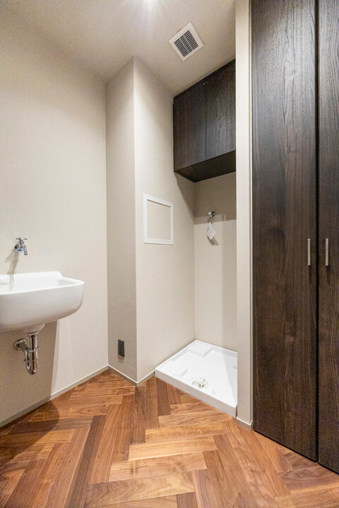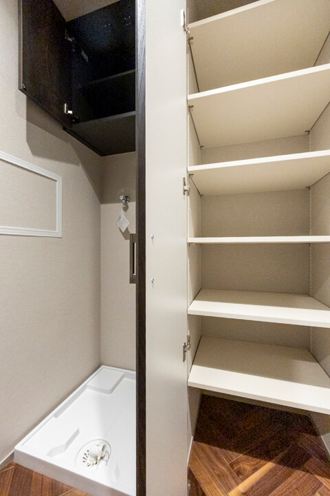 洗濯機置場やリネン庫、スロップシンクが設置されているランドリールームです。