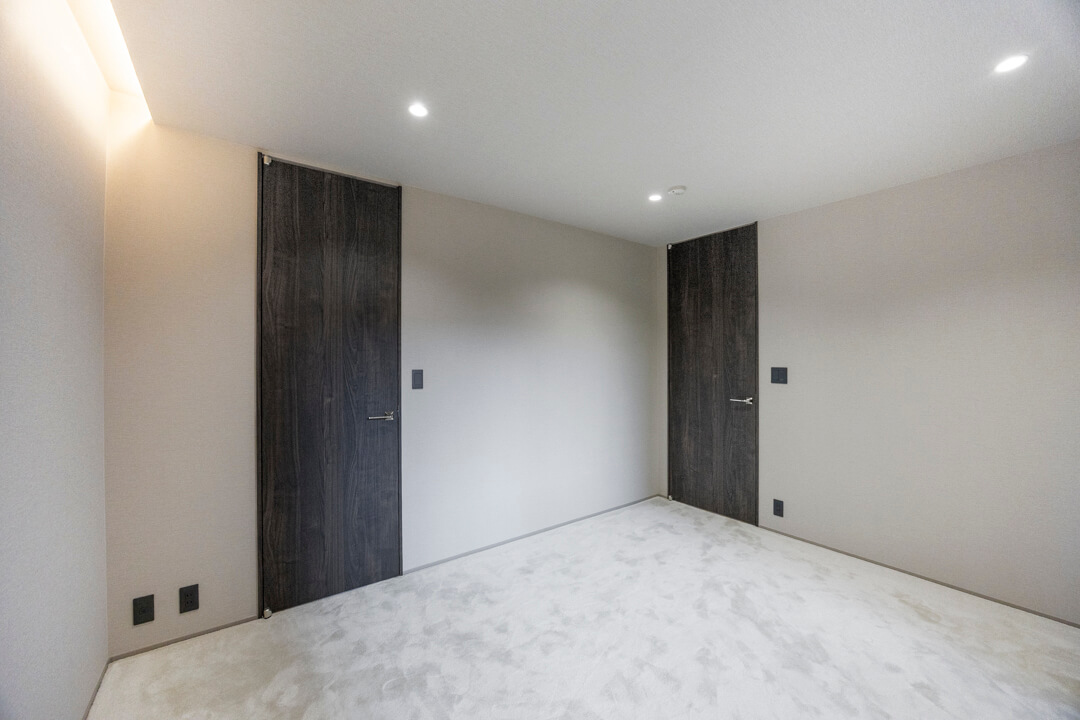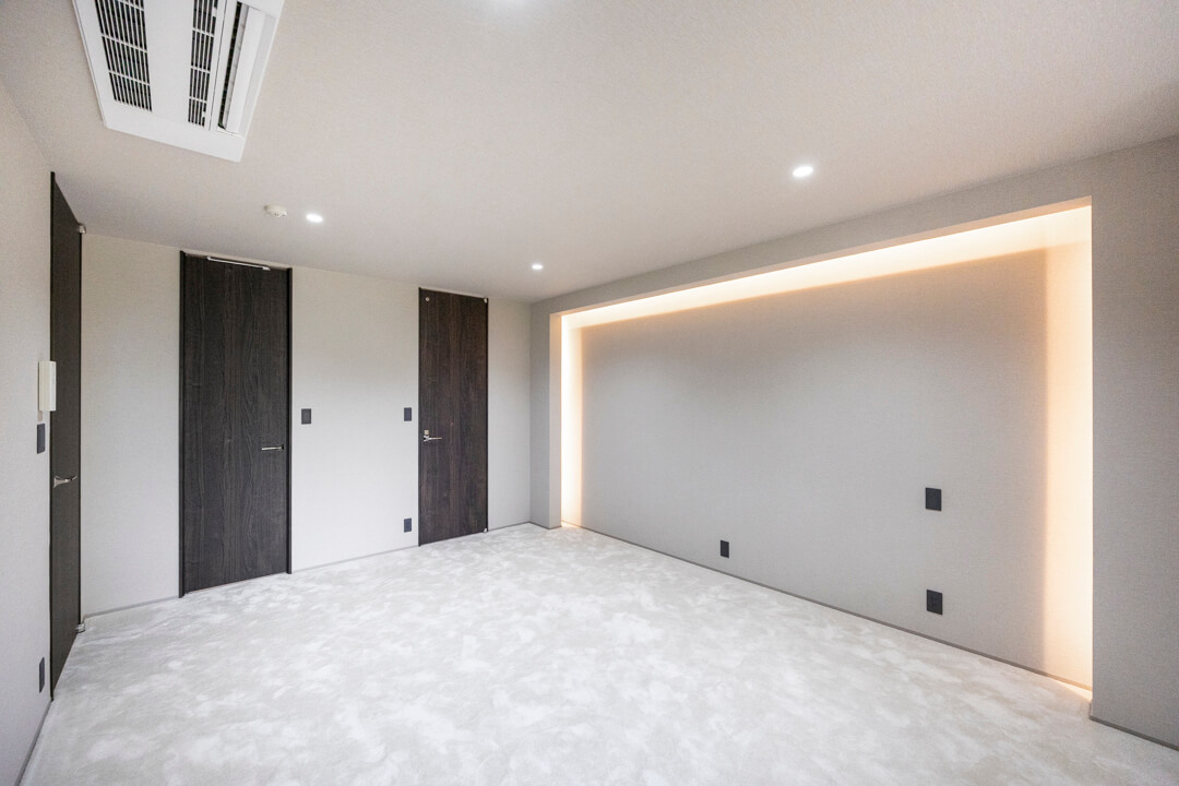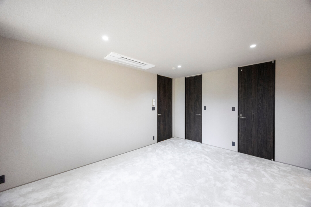 フロアは高級感を醸し出すカーペットが敷かれています。床暖房付きなので、足元からぽかぽか温まることができますよ。床暖房は、床から直接伝わる熱(伝導熱)と床から部屋全体に広がる熱(ふく射熱)の組み合わせで暖まります。埃が舞いにくく、空気が乾燥しにくいのも◎です。