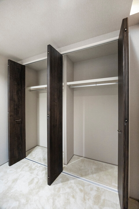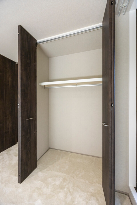 約8.8帖の洋室2は、独立性があって子ども部屋にも使える空間です。開口部が広めで物の出し入れがしやすいクローゼット付きで、洋服もおもちゃもきちんと収納することができそうですよ。