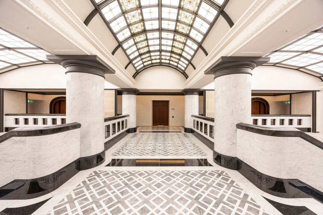 東京メトロ南北線・都営大江戸線「麻布十番」駅より徒歩5分、港区三田1丁目に佇む「三田ガーデンヒルズ」。重厚感が漂う外観や共用部、帝国ホテルと提携しているコンシェルジュサービスなど、ラグジュアリーな暮らしが叶います。また、広大な敷地にはノースヒル棟、イーストヒル棟、パークマンション棟、ウエストヒル棟、サウスヒル棟があり、今回の物件はイーストヒルの2階にある3LDKです。バルコニーからは緑豊かな中庭が望め、都会でありながら四季を感じる空間が広がっています。