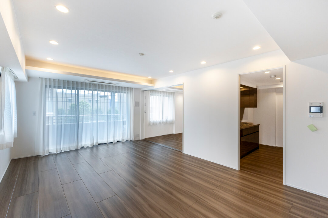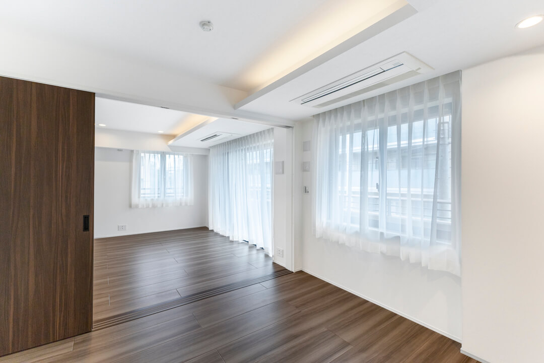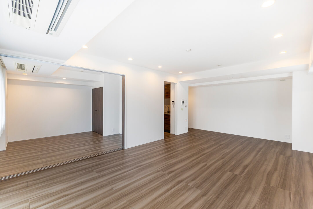 隣接する寝室3との間仕切り戸を開ければ、約28.7帖の一体空間に。開放感がUPし、さらに広々と過ごすことができます。ゲストが来た時に活躍しそうですね。