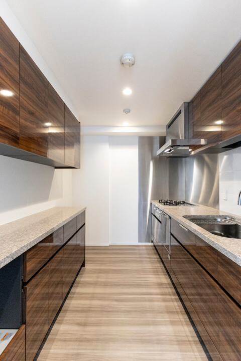 調理に集中できる独立キッチン。生活感が出やすいキッチンまわりをさりげなく目隠しできて嬉しいですね。調理中のにおいが生活スペースに広がりにくいのも助かります。