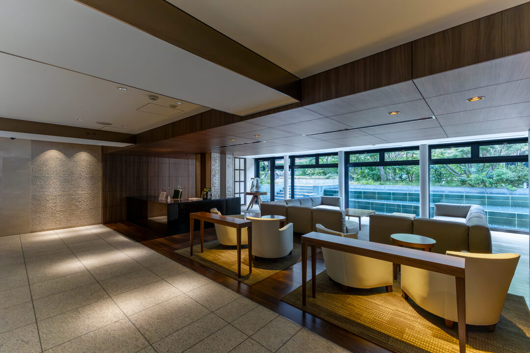 2015年(平成27年)7月に竣工した「パークコート渋谷大山町ザ・プラネ悠邸」。悠邸・清邸・翠邸の3棟で構成された低層レジデンスです。鉄筋コンクリート造地下1階付地上4階建、一棟の総戸数は51戸。豊かな緑に囲まれたタイル貼りの上品な外観が印象的です。ダブルオートロック完備・24時間有人管理(夜間警備員)体制でセキュリティ面は安心。コンシェルジュサービスやラウンジ、不在時に重宝する宅配ボックスも備わっています。共用部はホテルライクな内廊下設計で、プライバシーを守りやすく、天候の影響を受ける心配もありません。細則はありますが、犬・猫は2匹まで飼育可能です。