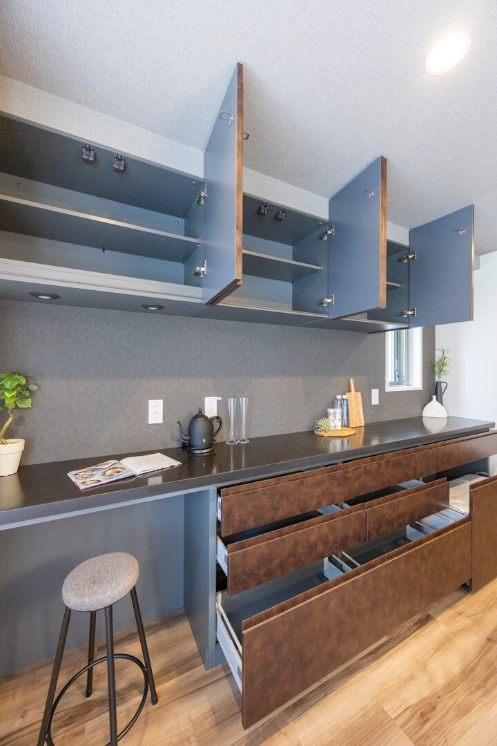 キッチンは、リビングダイニングを見渡しながら料理ができる対面式です。家族や来客との会話も弾みそうですね。隣にダイニングテーブルを置けば、配膳もしやすくて◎。