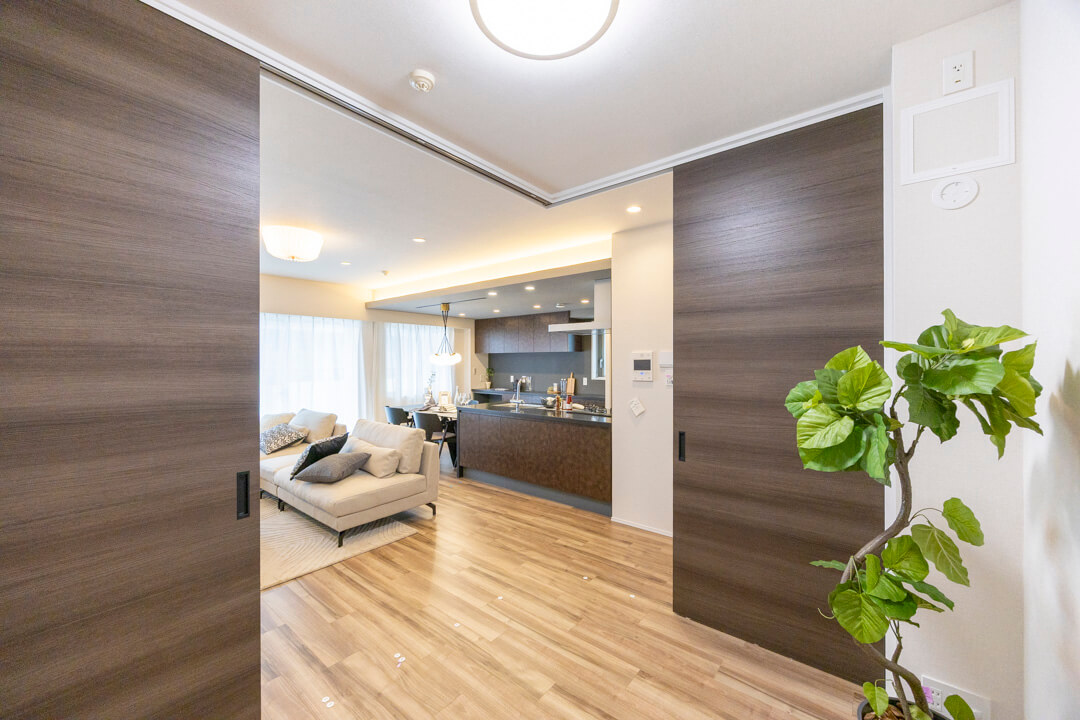 約3.5帖の洋室との引戸を開閉することによって、空間をフレキシブルに使うことができます。