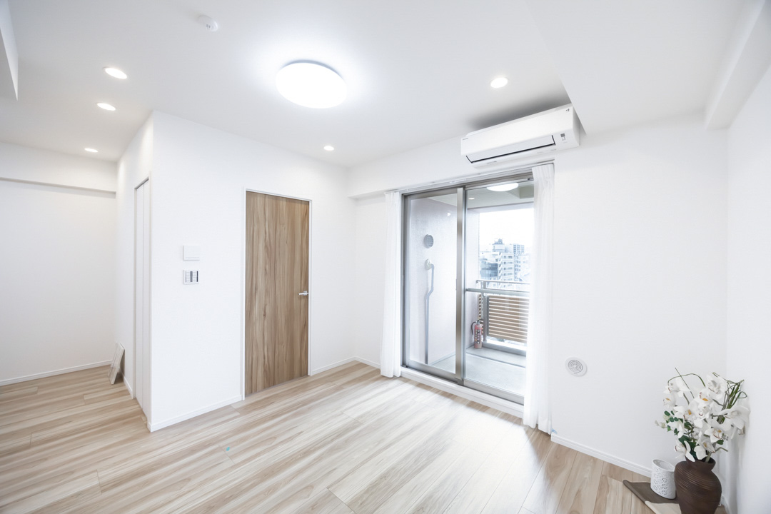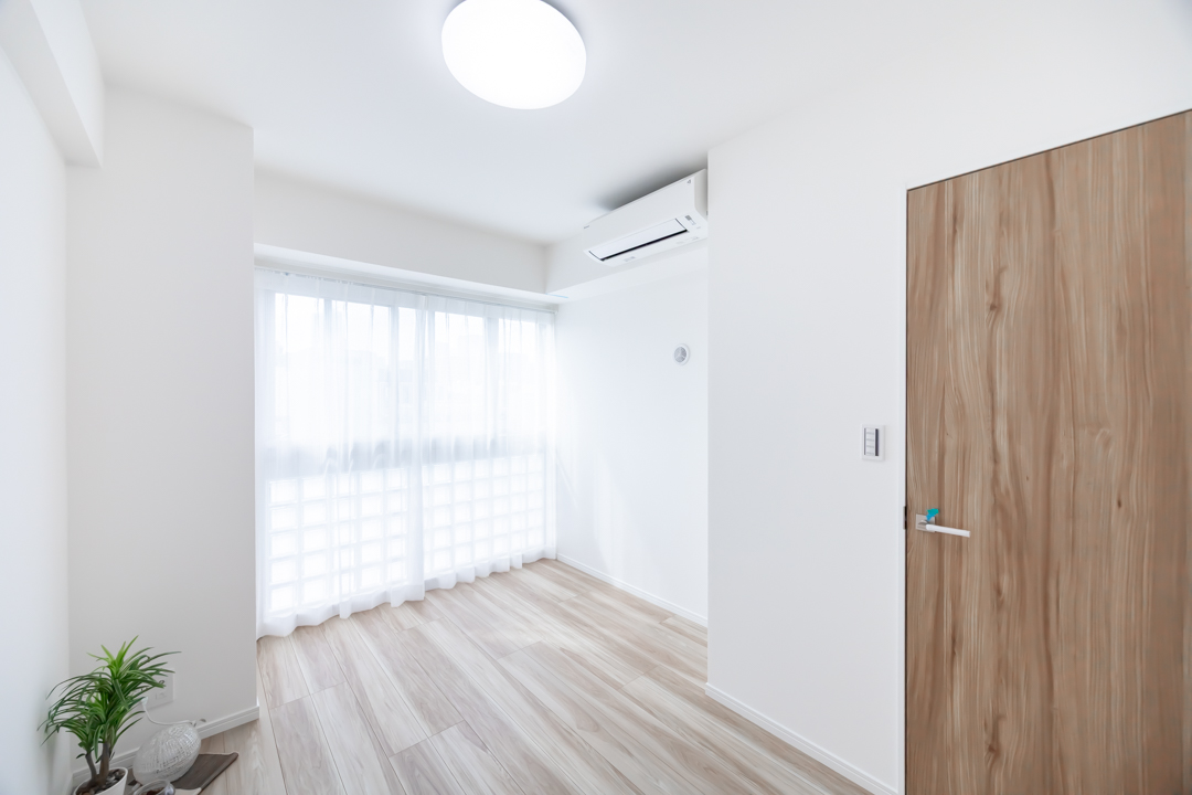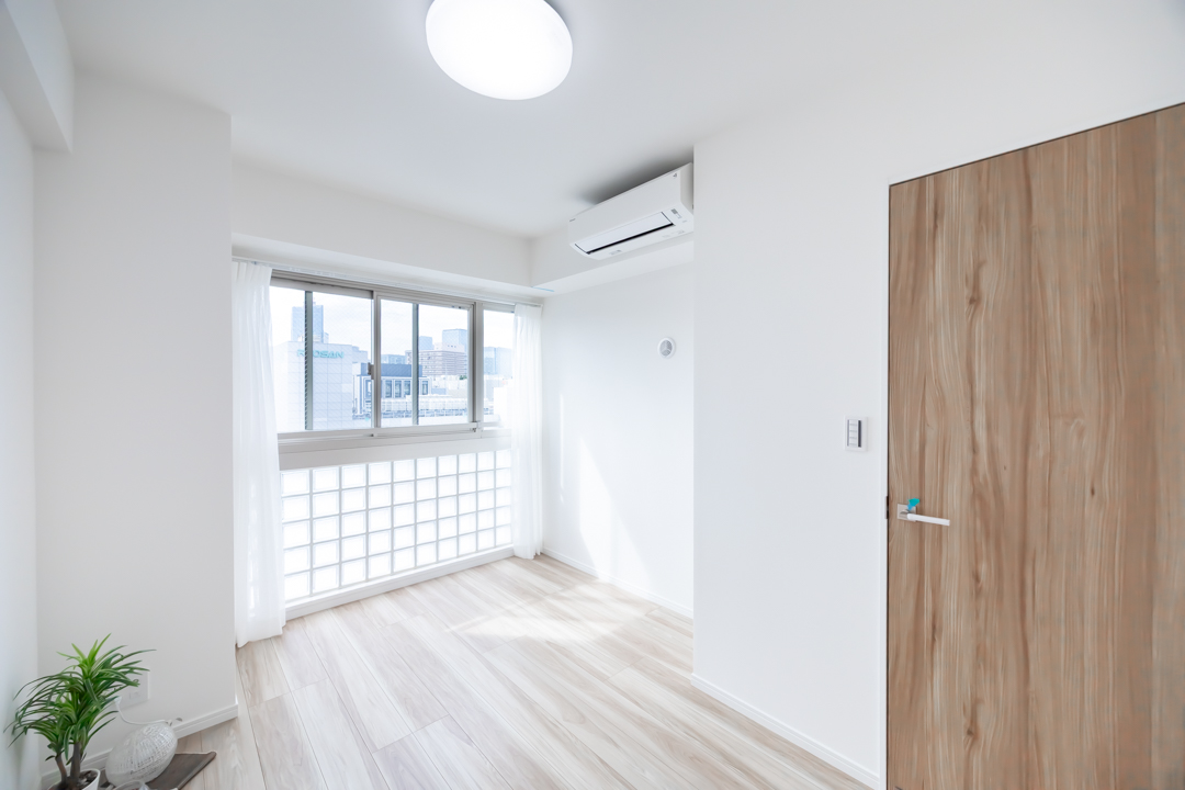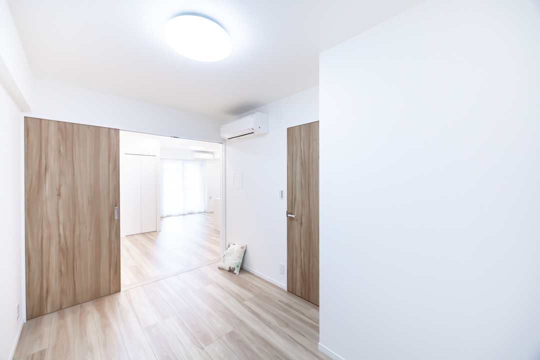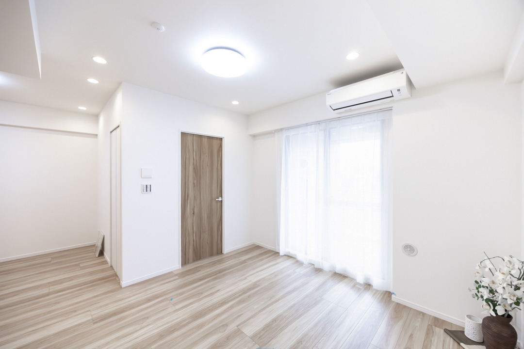 約5.0帖の洋室。ドアの開口部が広く取られており、扉を全開にしてより広々と過ごせます。エアコン、クローゼットも完備。廊下からも出入りできる便利な動線です。