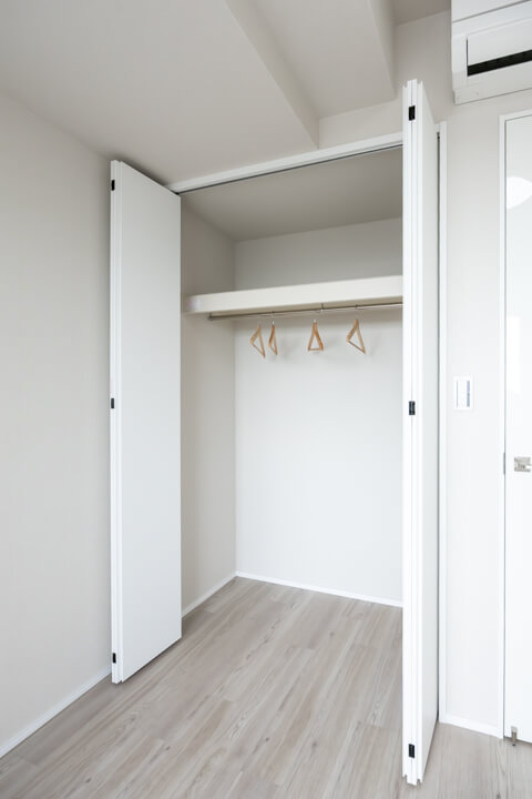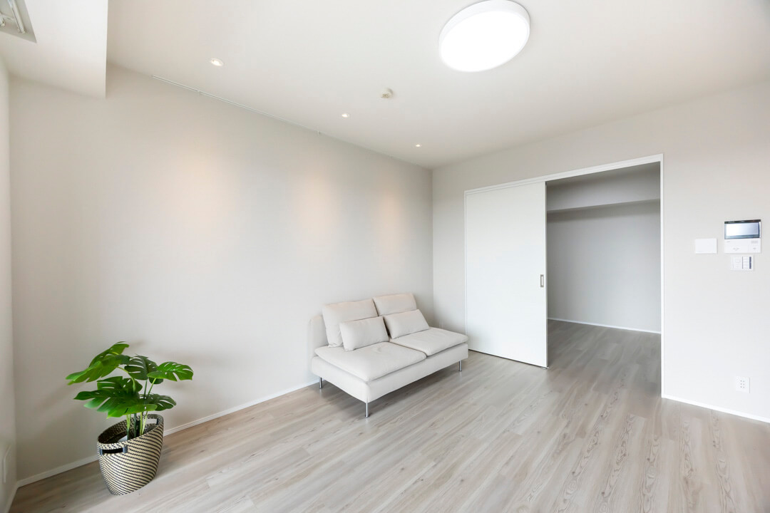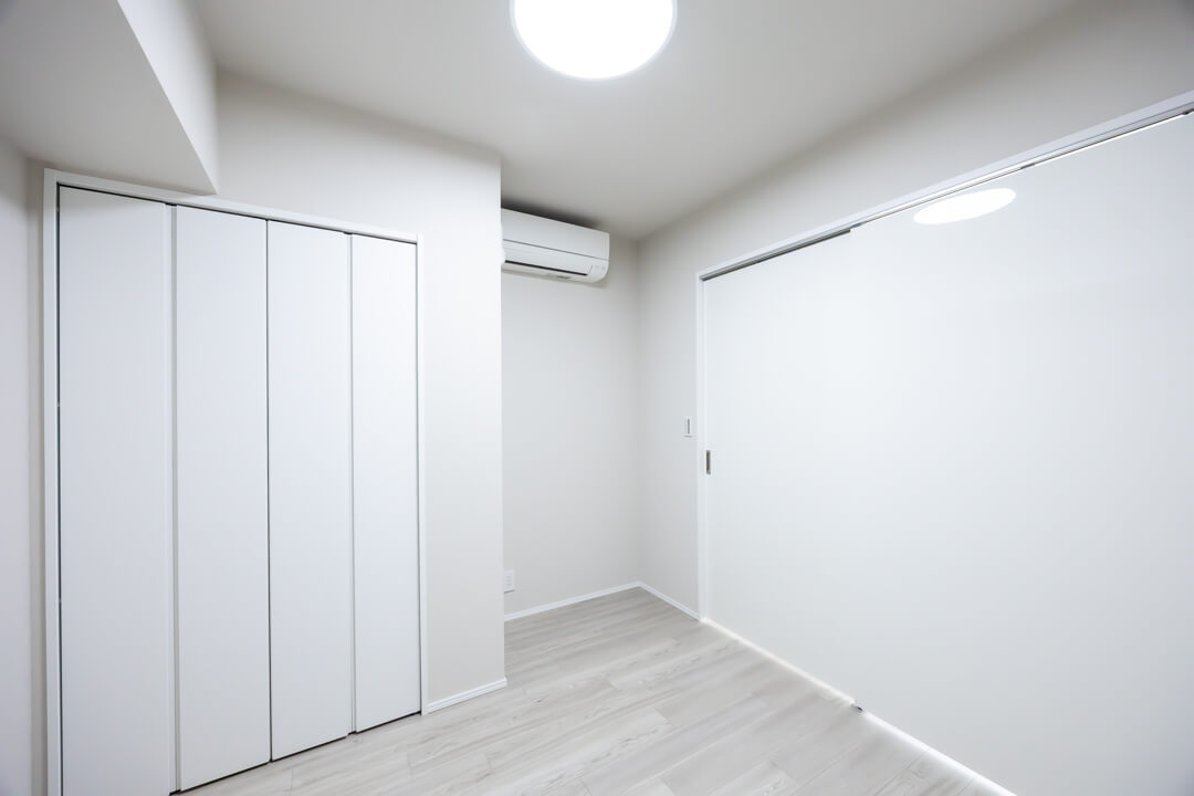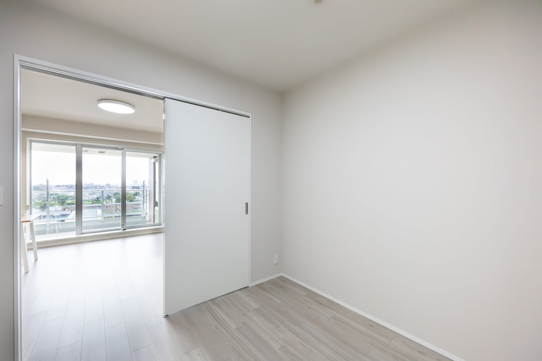 リビングダイニングに隣接している約5.1帖の洋室2です。エアコン・クローゼット付きのため、書斎や趣味部屋など色々な使い方ができそうですよ。