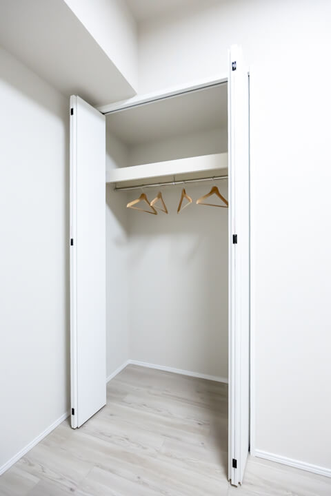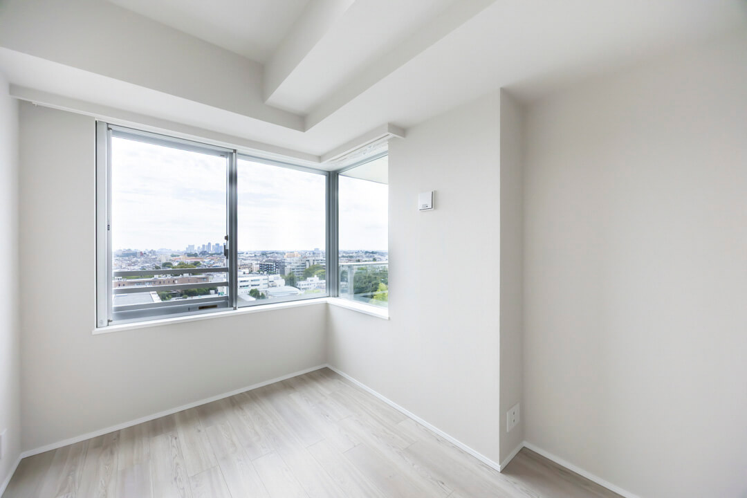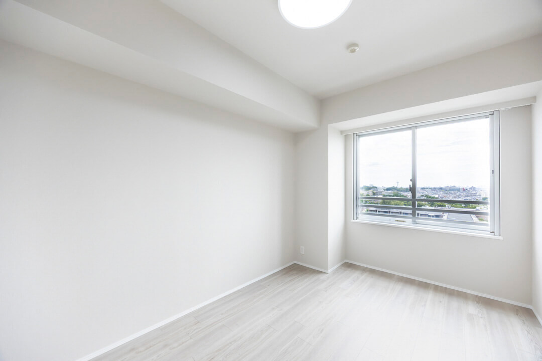 約6.0帖の洋室1は、L字の窓があって開放的な空間です。開口部が広めで物の出し入れがしやすいクローゼット付き。過ごしやすいお部屋となっているので、子ども部屋にもぴったりです。