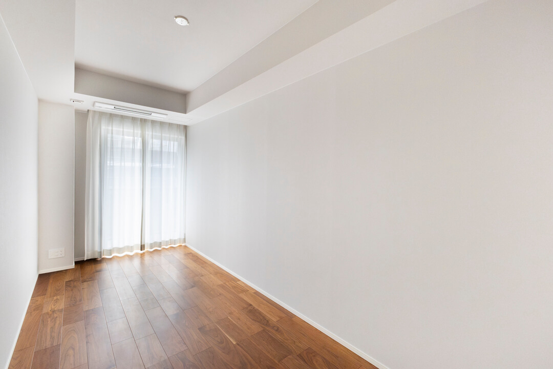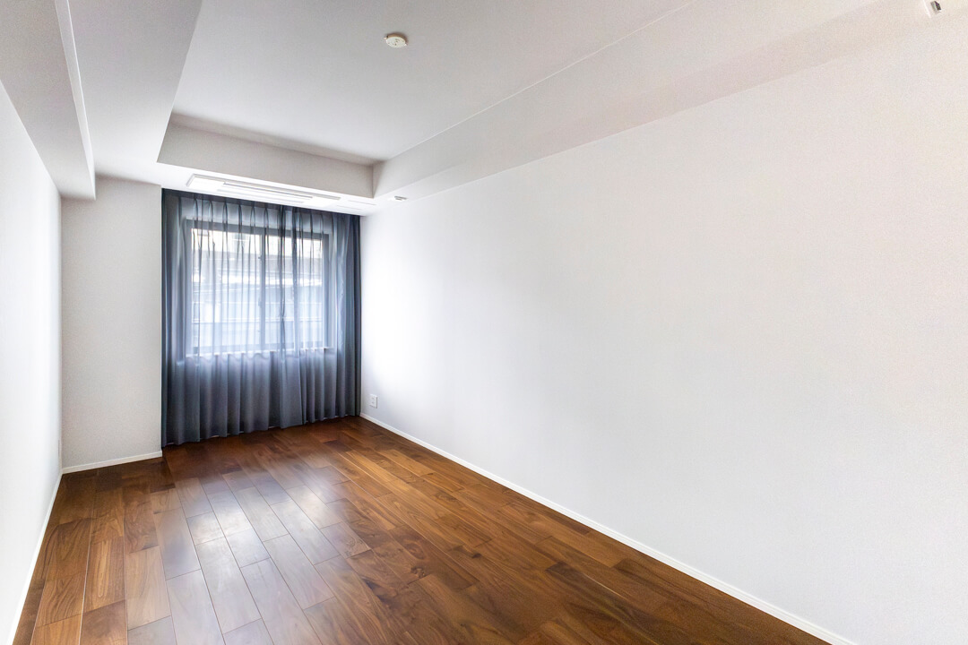 約7.5帖の寝室2。バルコニーに面する西向きの窓から自然光が差し込みます。こちらのお部屋にもWIC(ウォークインクローゼット)があり、収納スペースがしっかり確保されています。荷物を整理整頓し、居室空間を有効活用できそうですね。
