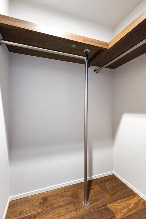 寝室に入ってすぐ右手にはWIC(ウォークインクローゼット)を完備。衣類はもちろん、トランクケースやゴルフバッグといった大きな荷物も収納でき、お部屋がすっきり片付きます。