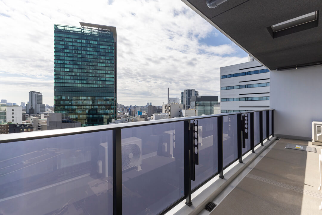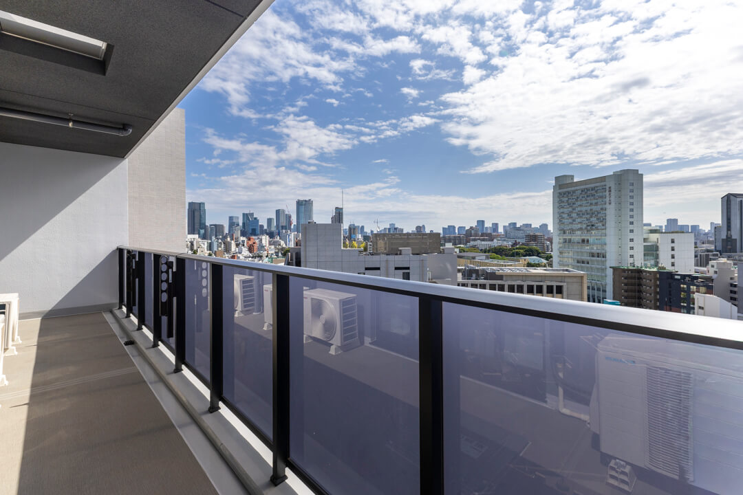 3部屋に跨るワイドスパンバルコニー。13階南東向きにつき日当たり・眺望良好です。15㎡超の広々としたスペースにあたたかい太陽光がたっぷり届き、ほっとリフレッシュできる場所になりそうです。
