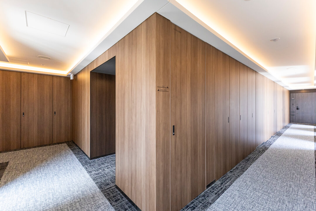 2023年(令和5年)5月に竣工した「アトラス青山レジデンシャル」。鉄筋コンクリート造地下1階付地上14階建、総戸数61戸のマンションです。構造フレームを活かしたスタイリッシュな外観に、植栽の緑で彩りを。ガラス張りのアプローチやソファの配置されたエントランスホールにはホテルライクな雰囲気が漂います。安心のダブルオートロック体制で、エレベーターには着床制限を採用。共用部は内廊下設計で、プライバシーを守りやすいですよ。不在時に重宝する宅配ボックスやペット用の足洗い場が完備されているのも嬉しいポイントです。さらに、敷地内には駐車場・駐輪場・バイク置き場を完備。駐輪場はアプローチ横のスロープを下った先にあります。屋内なので天候の影響を受けず、防犯性の高さも魅力的です。