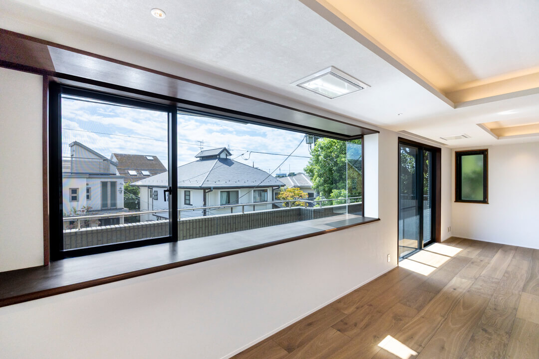 主寝室の窓からは北向きのバルコニーにアクセスが可能。2階部分ですが、背の高い植栽のおかげで、周りからの視線が気になりにくくなっています。チェアなどを置いて気分転換にも◎。