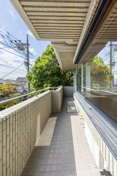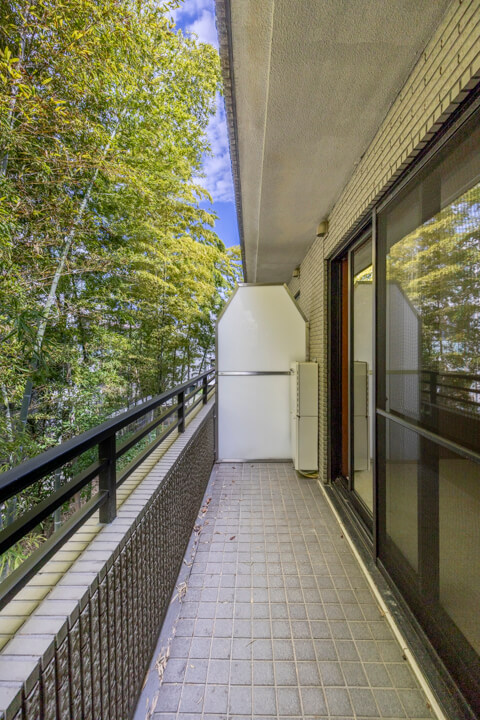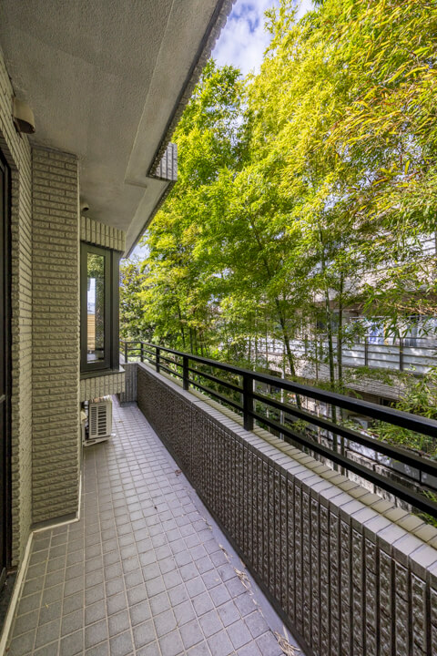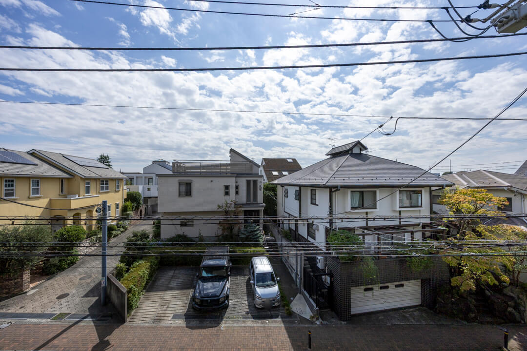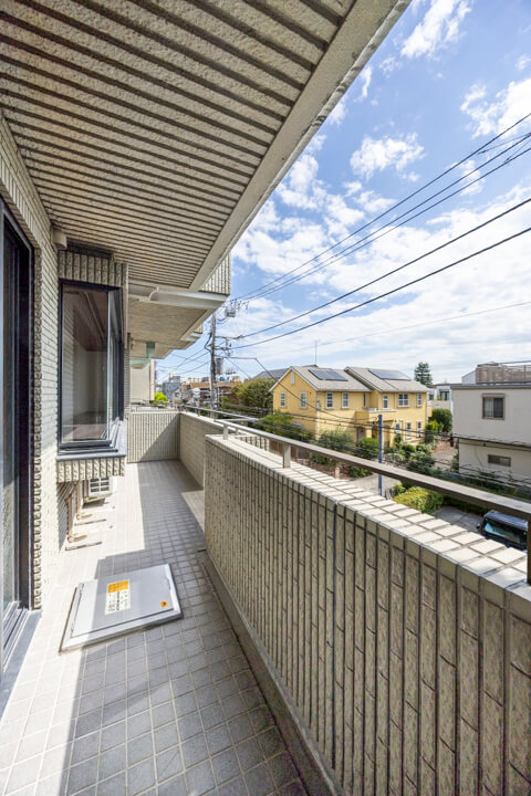南向きで日当たりが良好なバルコニー。洗濯物も良く乾きそうですよ。目の前には閑静な住宅街が広がり、落ち着いた空間となっています。