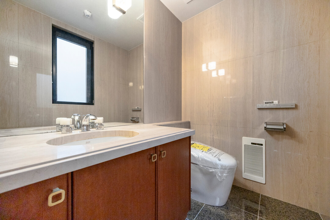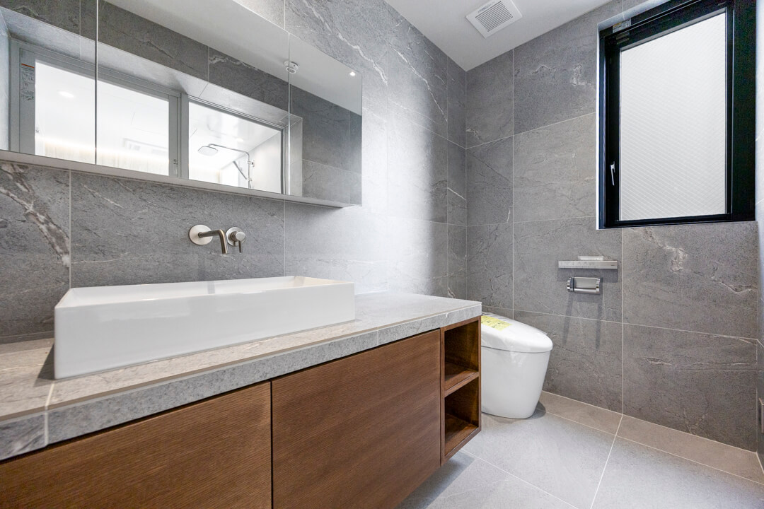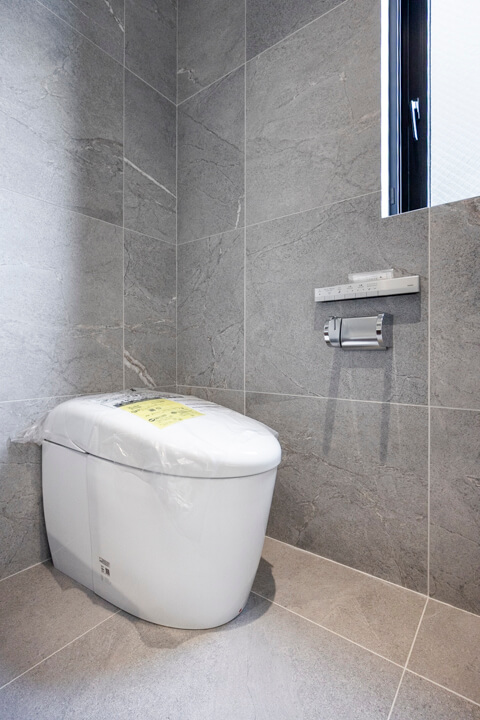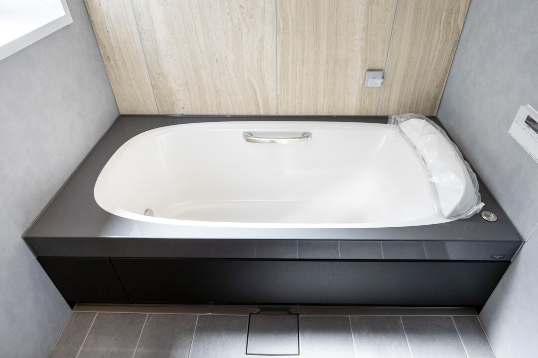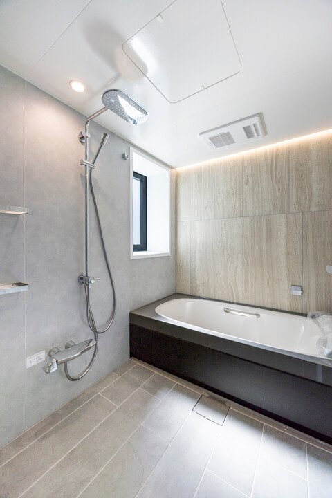 洗練された雰囲気が漂うバスルームです。お風呂にゆっくり浸かるのが好きという方に嬉しい追い焚き機能を搭載。家族の入浴時間がずれてしまっても安心です。浴室乾燥機には暖房・乾燥・換気・涼風の機能がついており、一年中快適に過ごすことができます。窓もあるので自然換気もしやすくなっています。