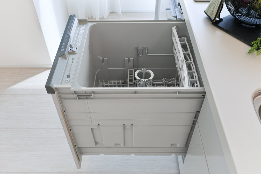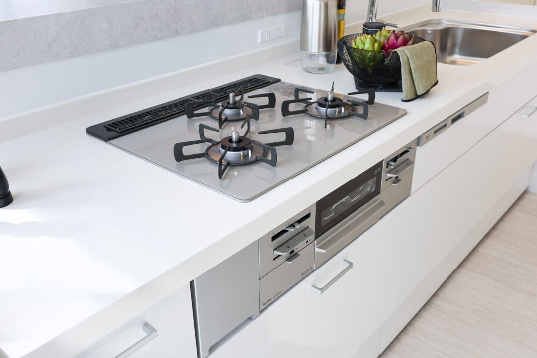 3口コンロ、グリル、食洗機付きと設備面も充実しています。シンクも広々としているので野菜などが洗いやすそうですよ。