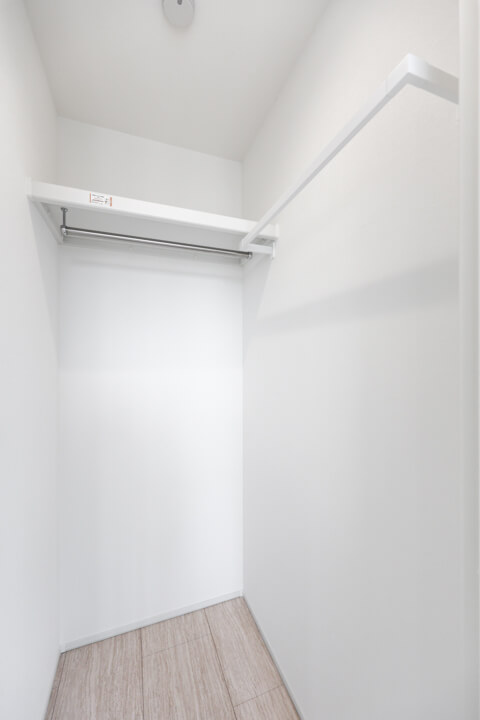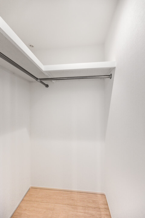 約5.0帖の寝室1は主寝室に良さそうなお部屋。天井には間接照明があしらわれていて、くつろぎの空間を演出しています。また、奥行きがあるウォークインクローゼットが造られており、洋服や大きめの荷物も収納できるようになっています