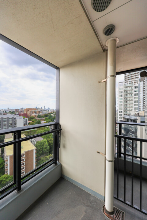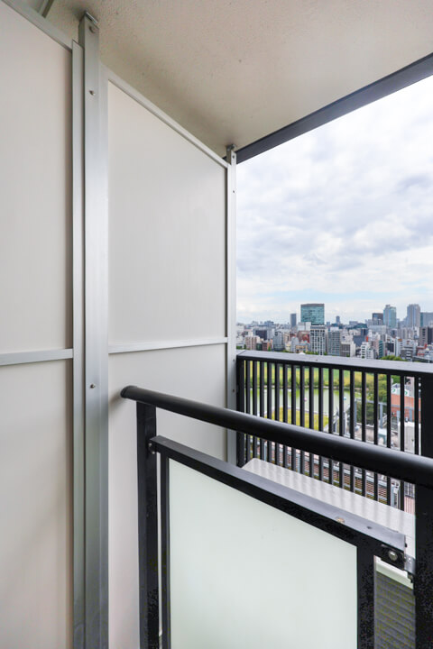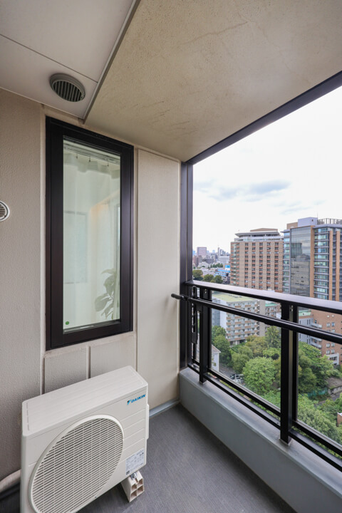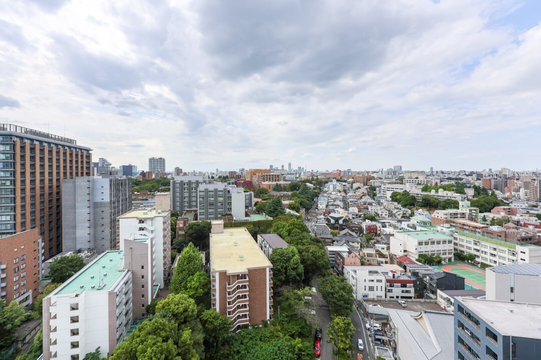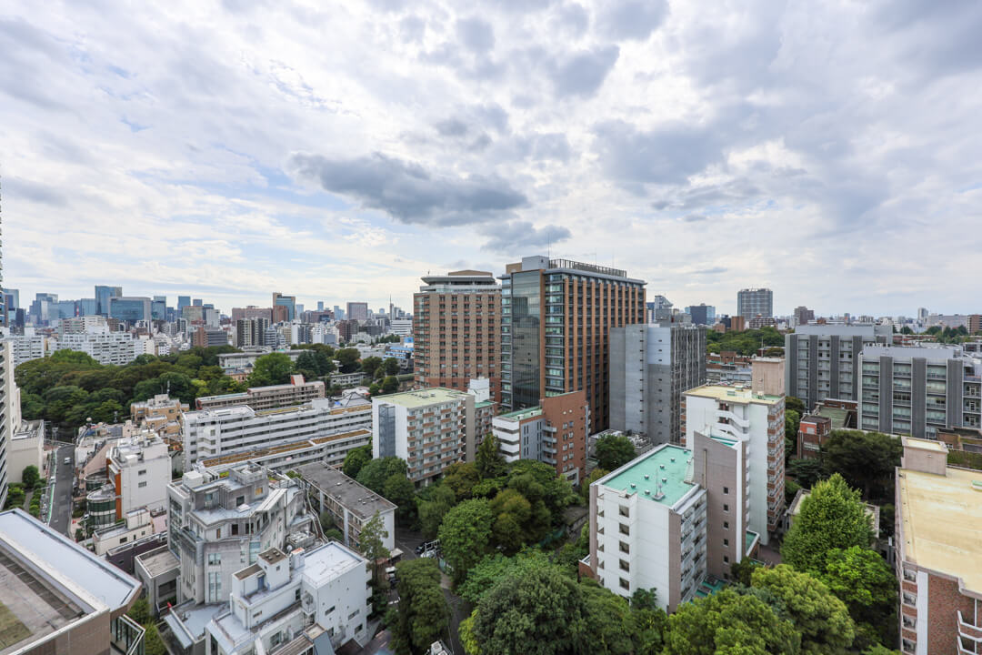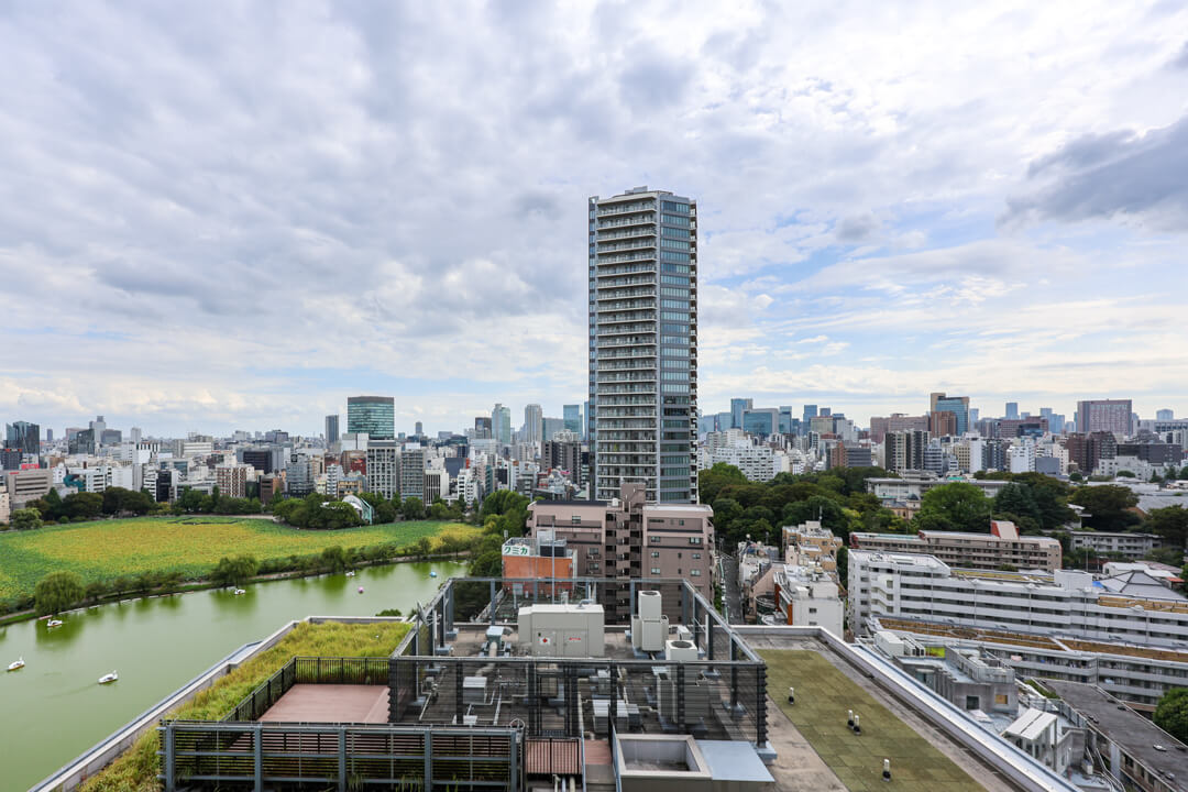 南西側のバルコニーは日当たりが良好。17階ということもあり、目の前には開放的な眺望が広がっています。東京大学や旧岩崎邸庭園の緑も望めて◎。