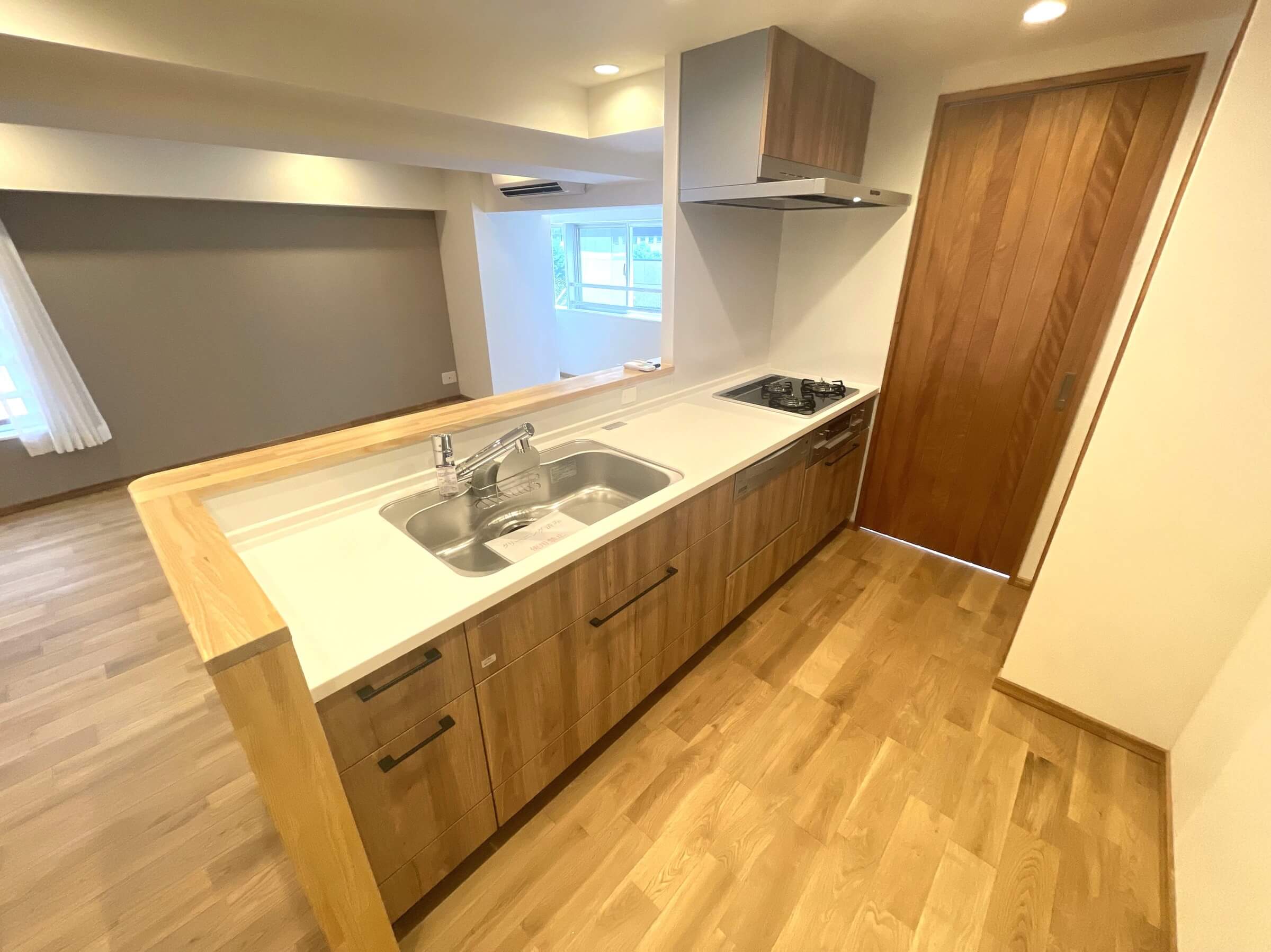 3口コンロ、グリル、食洗機付きと設備面も充実しています。シンクも広々としているので野菜などが洗いやすそうですよ。