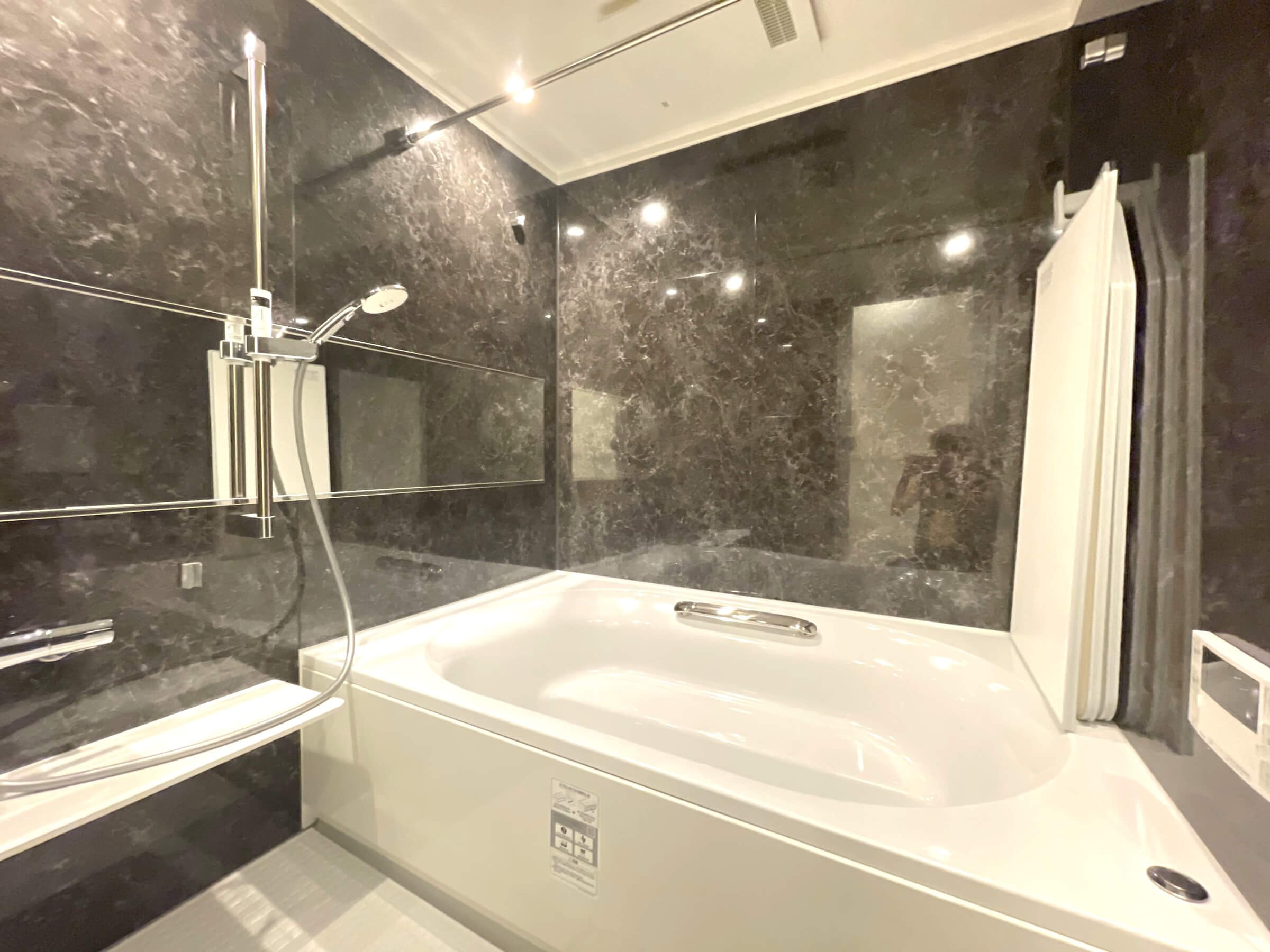 1620サイズのゆとりある広さのバスルーム。追い炊き機能の他、浴室換気乾燥機とランドリーパイプ付きで雨の日や冬場の洗濯にも困りません。
