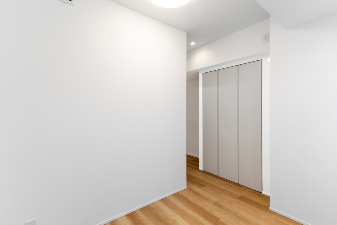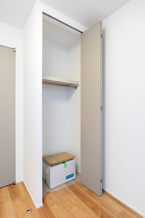お隣にあるのは約5.6帖の洋室3。西側に2つの窓が並び、明るい光が差し込みます。クローゼットは開口部分が大きく、荷物を出し入れしやすいのがポイントです。