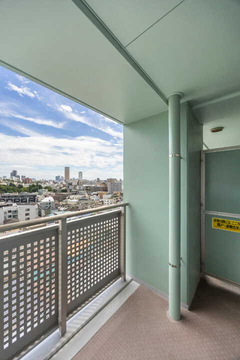 角部屋につき、通風良好な2面バルコニー。リビングダイニングに面したバルコニーは、朝の光が心地よい東向き。周辺は低層住宅が多く、見晴らしも良好です。また、もう一つのバルコニーは北向きで、3つの洋室に面しています。