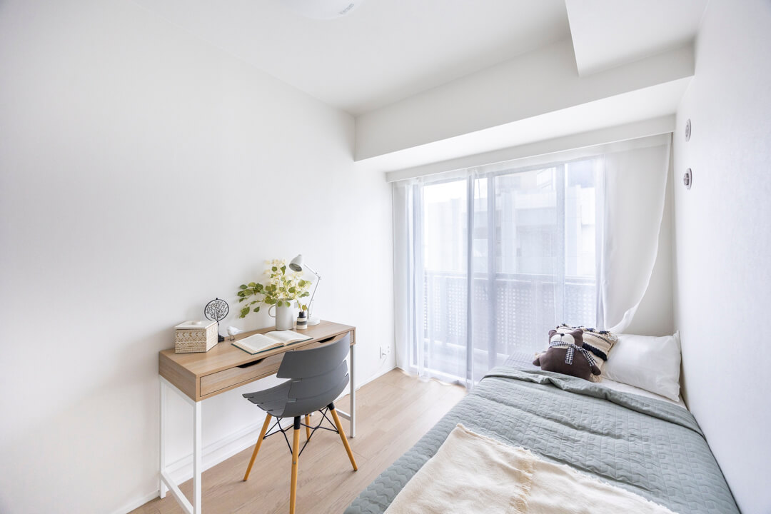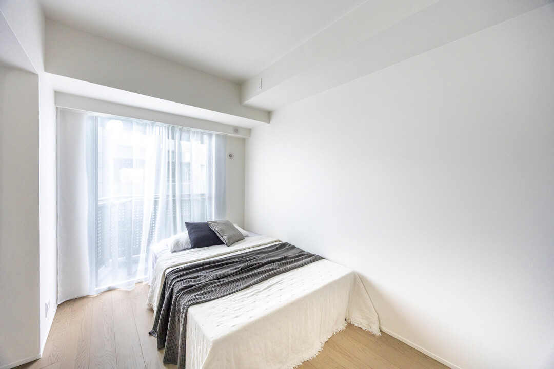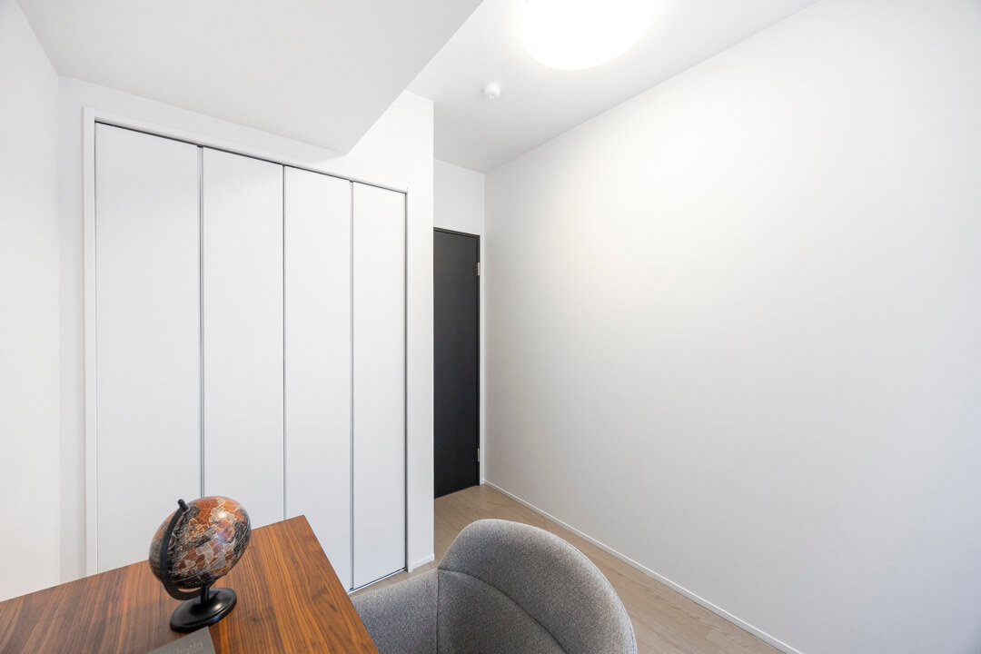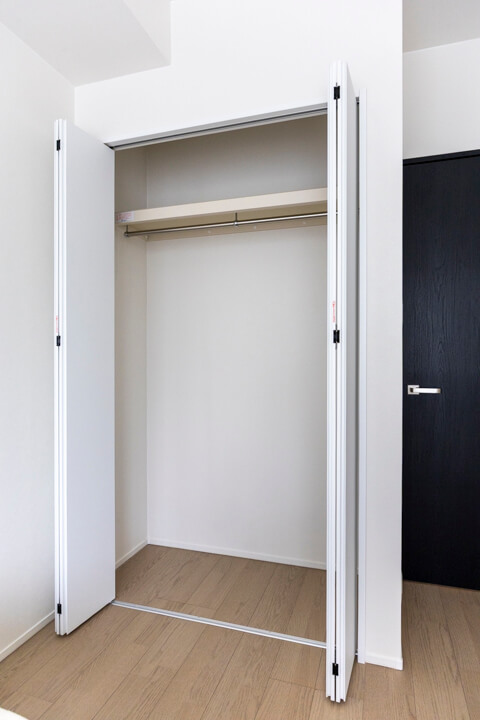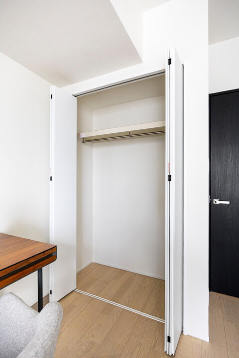 約5.0帖の洋室2。洋室は全て廊下に面した独立性の高い空間で、自分時間をゆっくりと過ごせます。こちらのお部屋もバルコニーへの出入りが可能。クローゼットも備わっています。