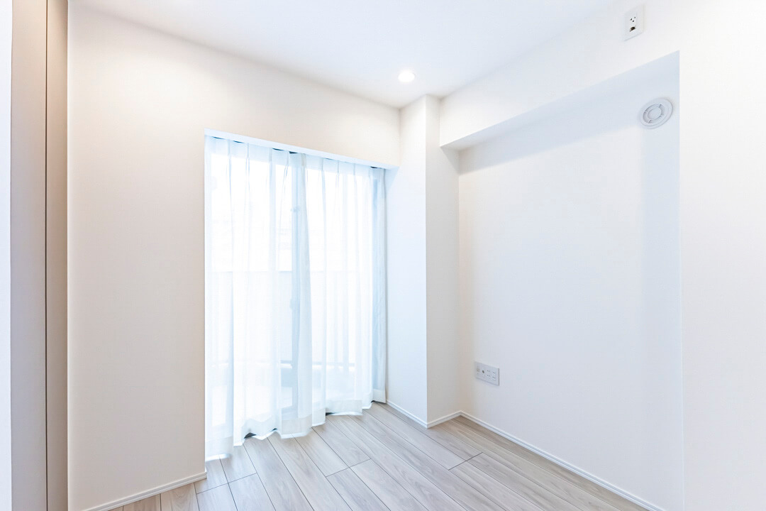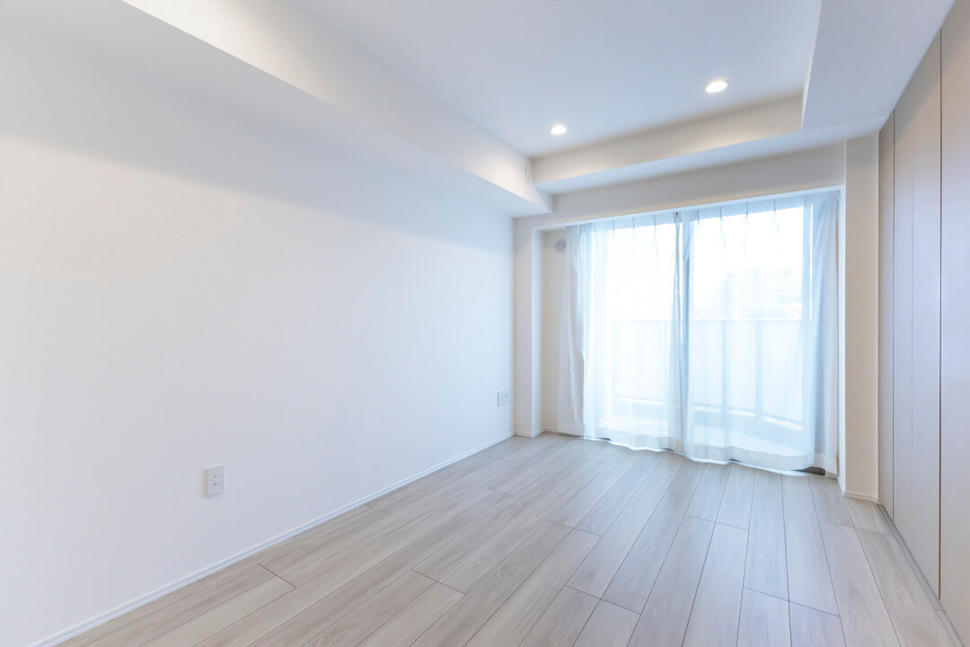約4.5帖の寝室2。こちらのお部屋もバルコニー付きで、コンパクトながら奥行きを感じることができます。クローゼット完備で収納スペースもしっかり確保◎。ワークスペースや趣味部屋にいかがでしょうか?