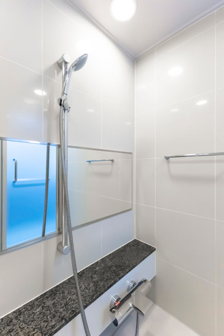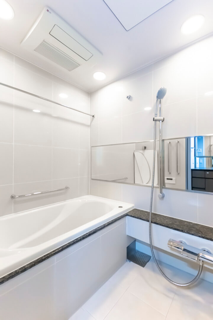 明るく清潔感のあるバスルーム。ワイドミラーが奥行きをもたらし、広々とした印象です。換気・暖房・乾燥・涼風機能付きで1年中快適なバスタイムに。丸みを帯びた浴槽が疲れた身体を包み込んでくれそうです。お風呂にゆっくり浸かるのが好きという方に嬉しい追い焚き機能も搭載されています。