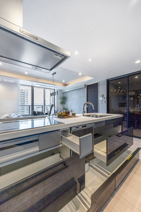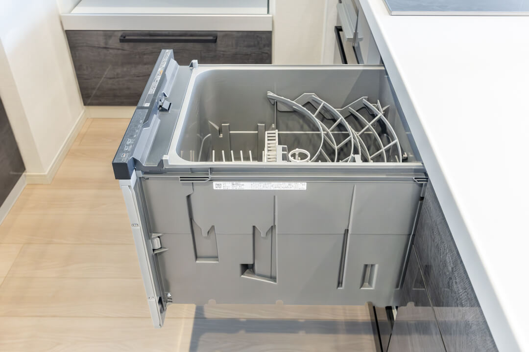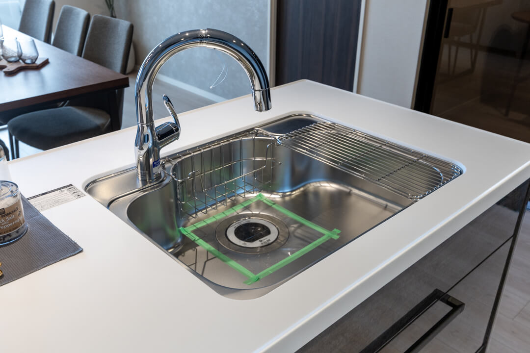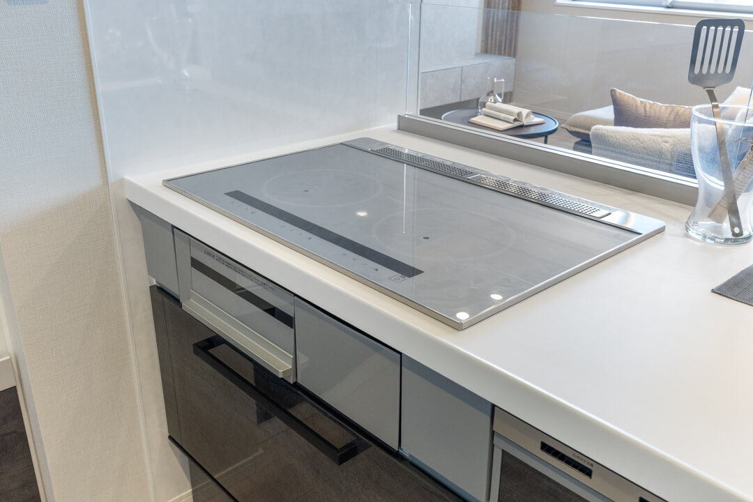 3口のIHクッキングヒーター&食洗機完備で調理も後片付けも捗りそう。IHはスイッチで火力を調節でき、ガスコンロよりも調整が簡単です。凹凸がなくフラットでお手入れがしやすいのも魅力的ですよ。さらに、シンクにはディスポーザーが搭載されていて、料理後すぐに生ゴミを処理できます。掃除の手間が軽減され、悪臭の原因を防いでくれます。