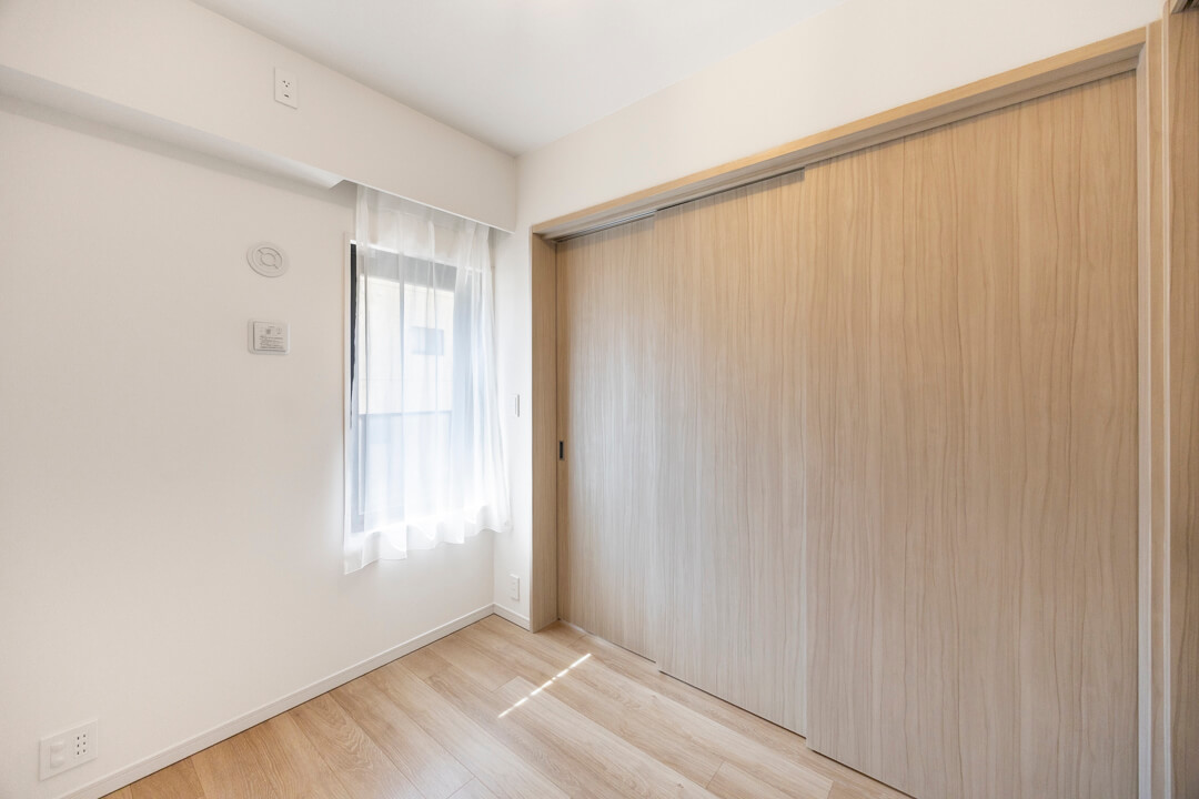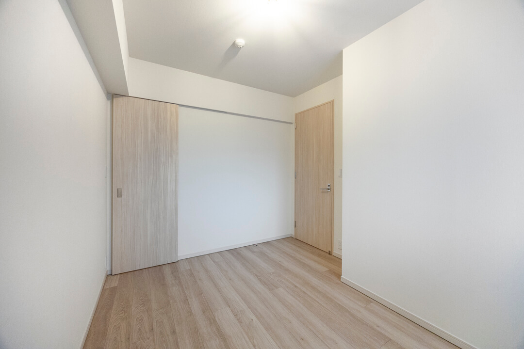 約3.8帖の寝室3は、リビングダイニングキッチンに隣接しています。奥行きがあるクローゼット付きで、収納スペースも確保されています。客間や書斎など色々な使い方ができそうですね。