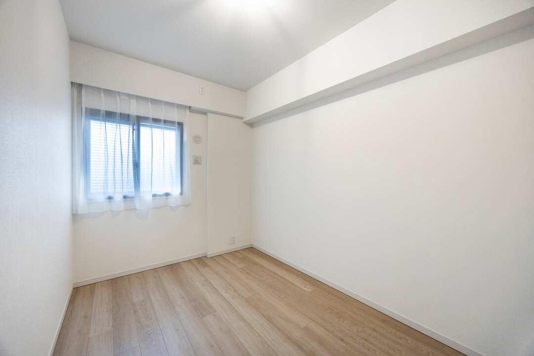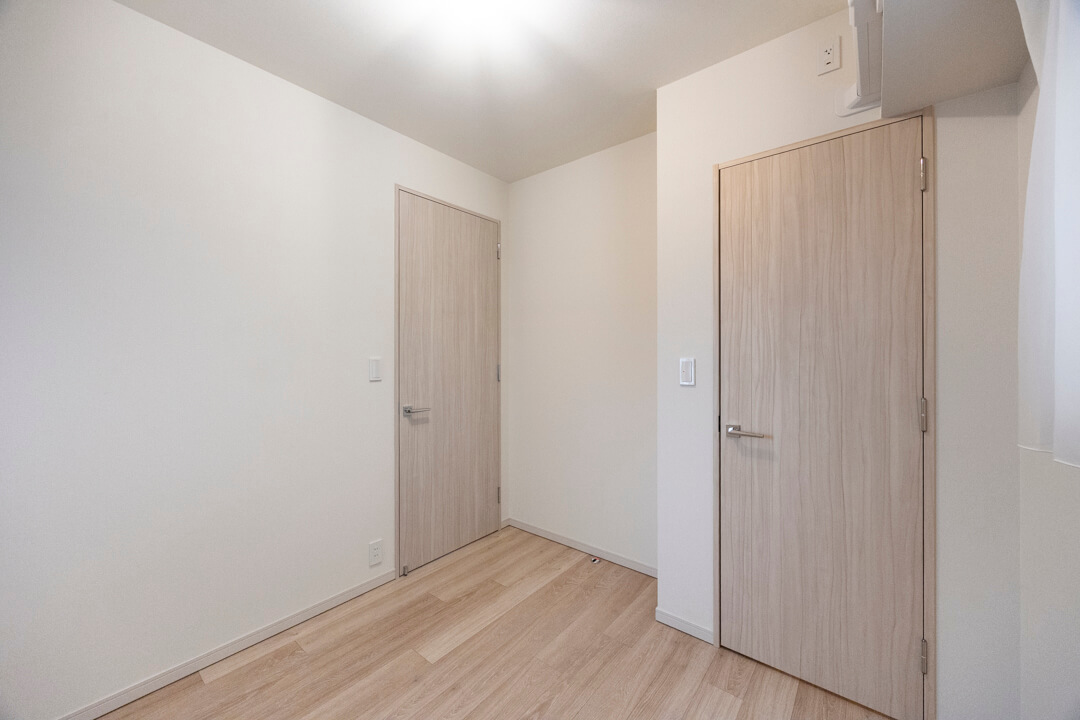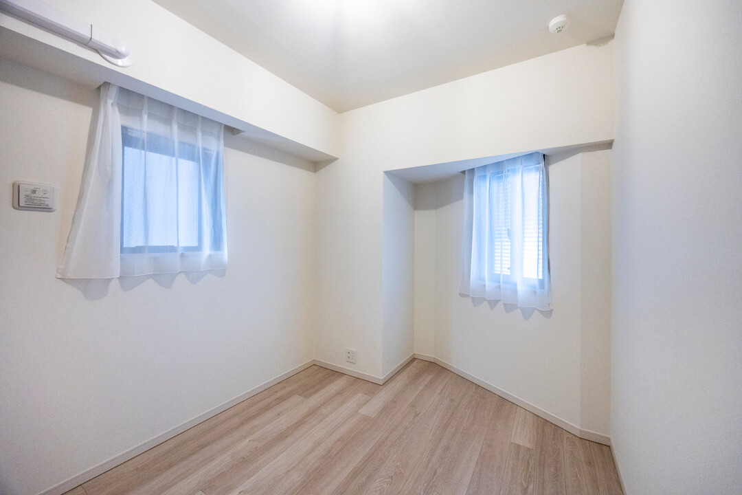 約5.5帖の寝室2は、二面採光で空間に広がりをプラスしてくれています。独立性があるので、子ども部屋として使っても◎。また、こちらのお部屋にもウォークインクローゼットが造られています。